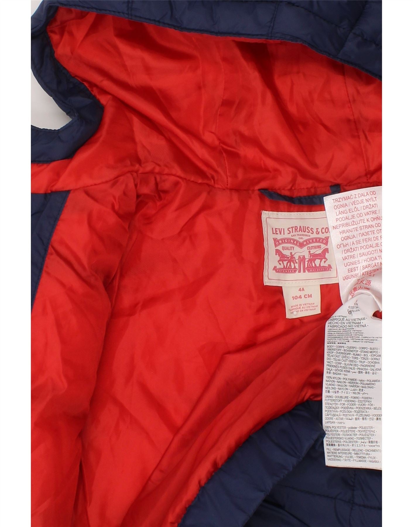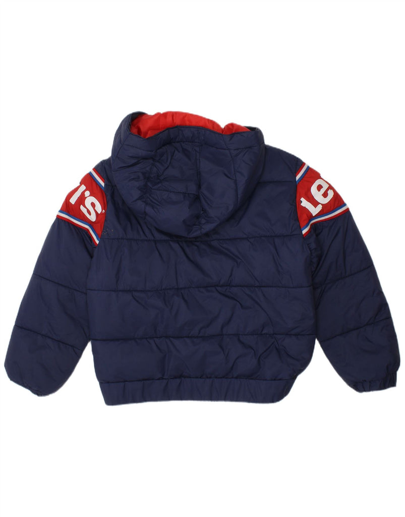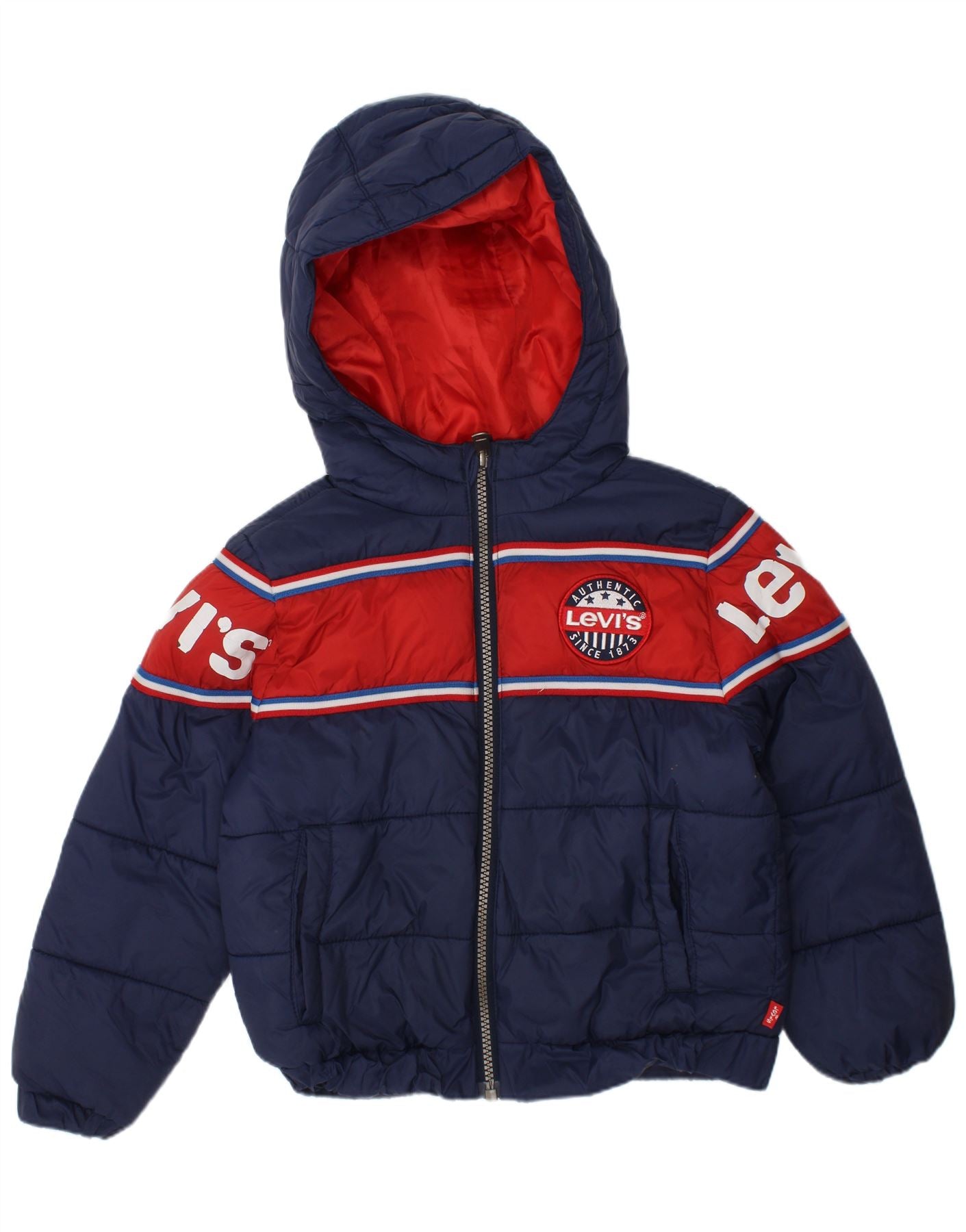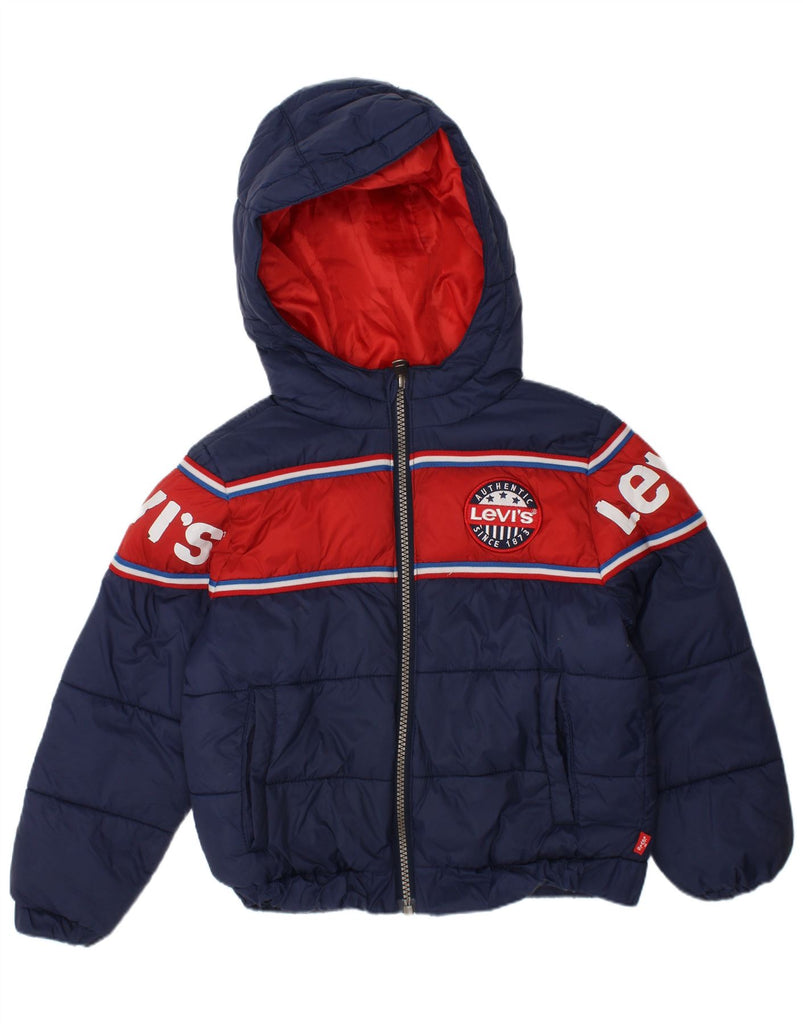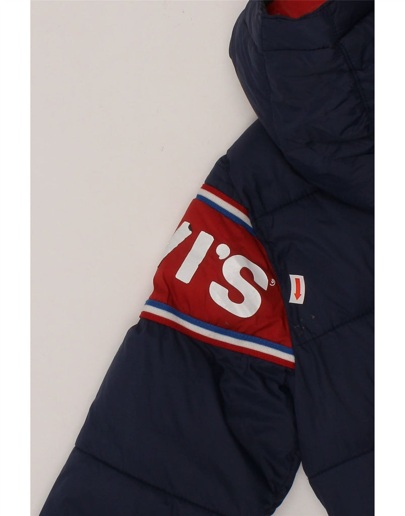 LEVI'S Boys Graphic Hooded Padded Jacket 3-4 Years Navy Blue Colourblock