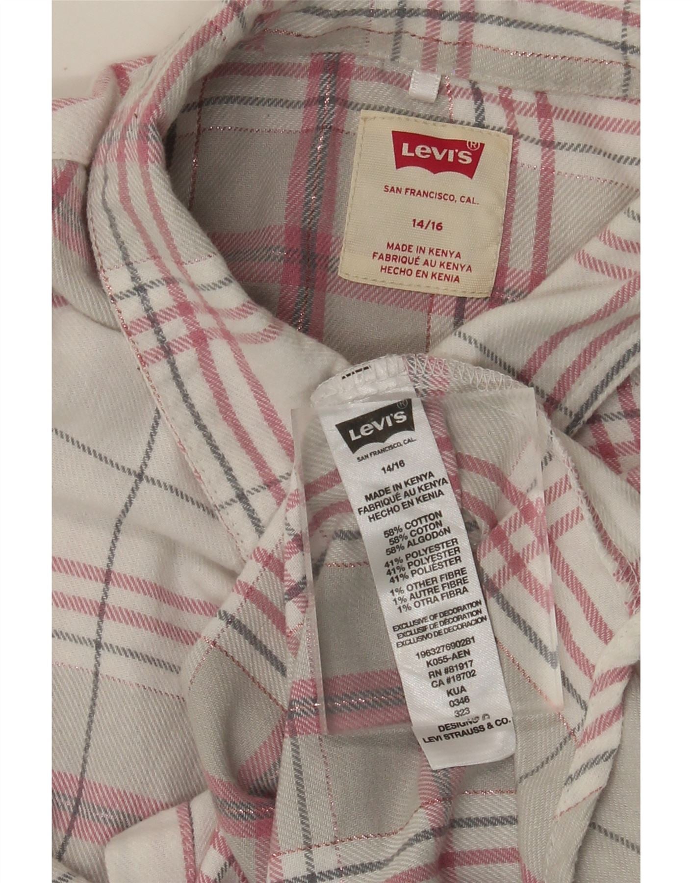 Фланелевая рубашка LEVI'S для девочек 14-15 лет, серая клетка, хлопок