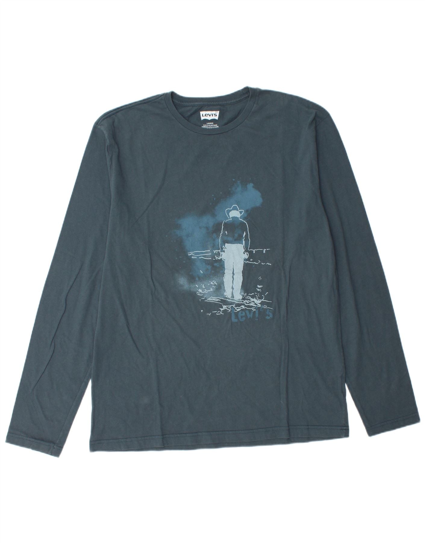 Мужской топ с рисунком LEVI's, длинный рукав, большой размер, темно-синий, хлопок