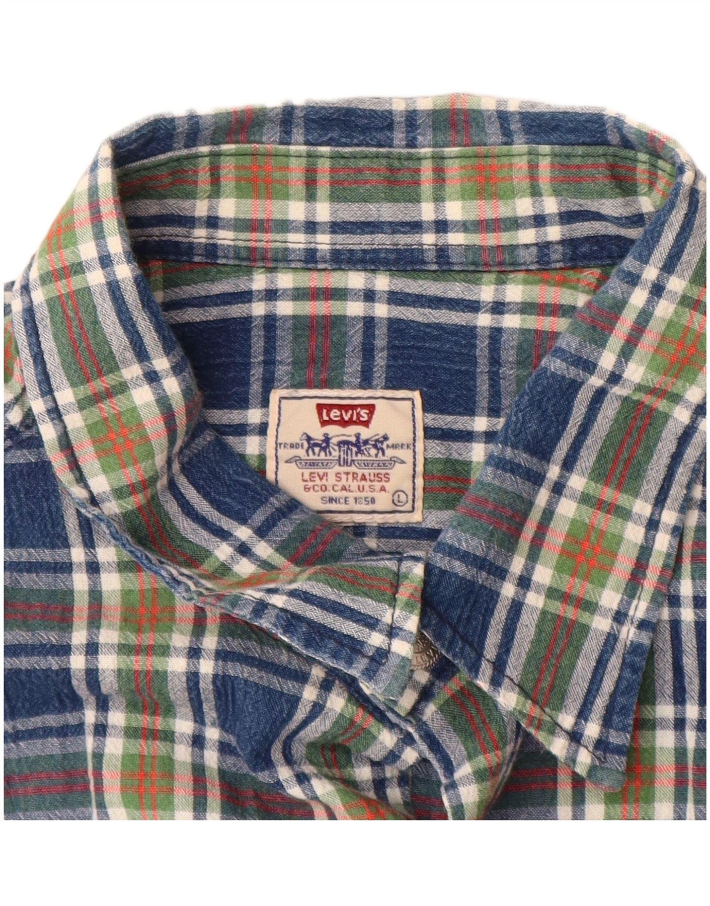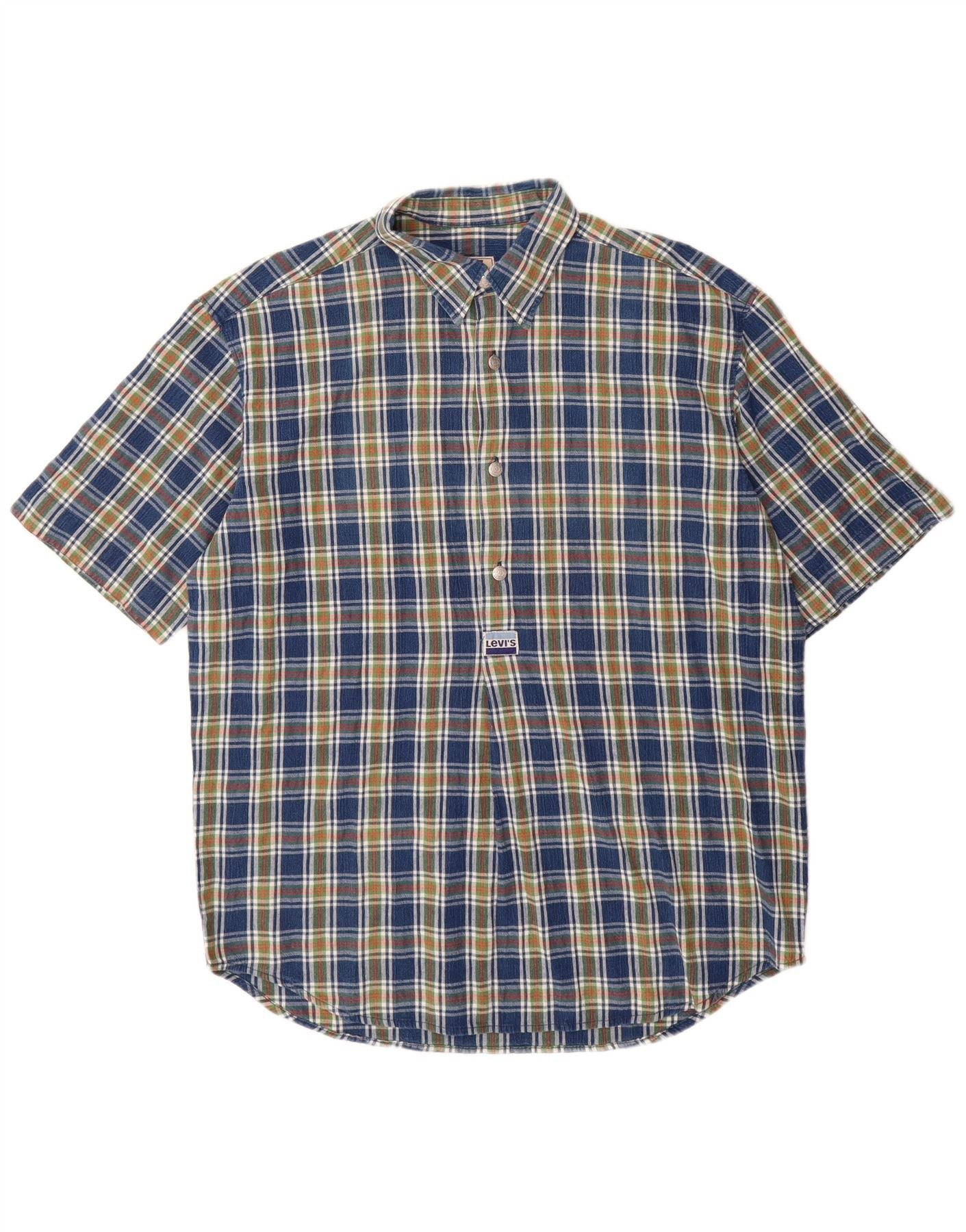 Мужской пуловер с короткими рукавами LEVI'S, большая синяя хлопковая рубашка в клетку