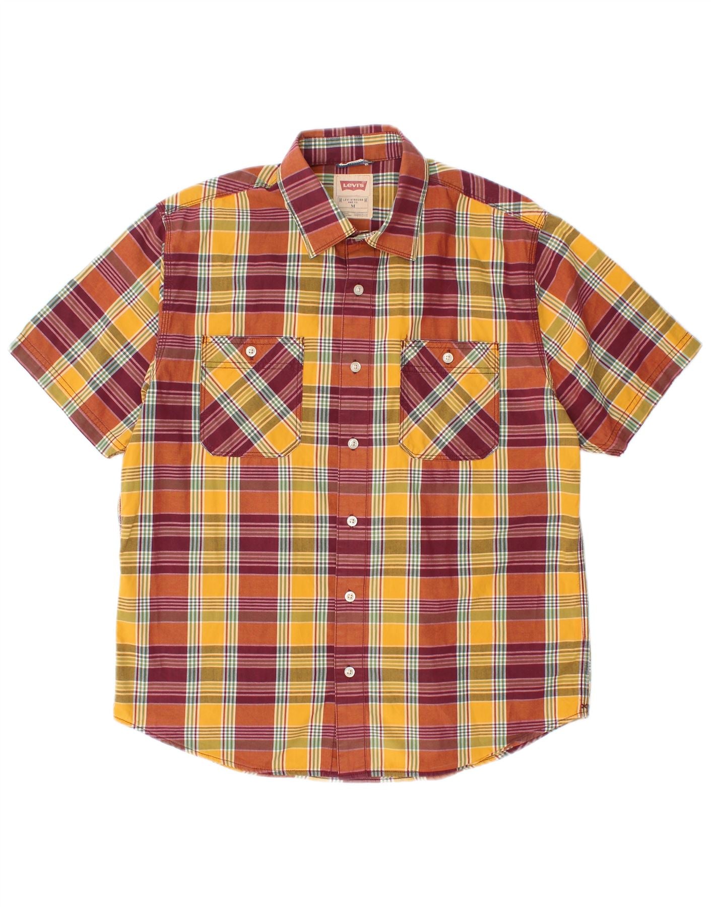Мужская рубашка с коротким рукавом LEVI'S, средний размер, разноцветная клетка, хлопок