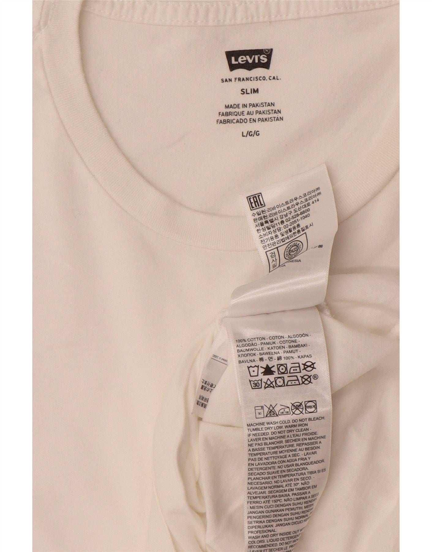 Мужская тонкая футболка LEVI'S, большой белый хлопок