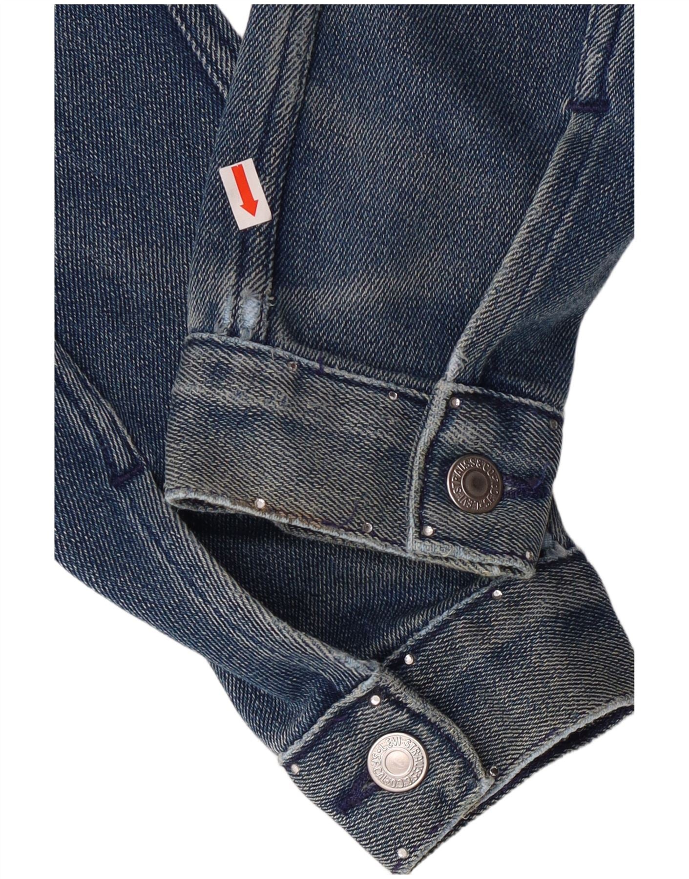 Женская укороченная джинсовая куртка Levi's UK 12, хлопок среднего синего цвета