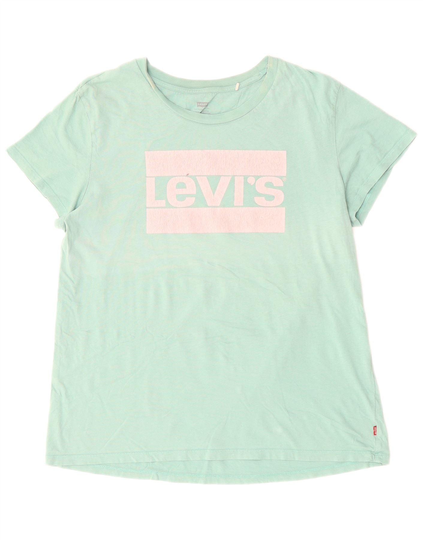Женская футболка с рисунком LEVI'S Top UK 16, большой размер, бирюзовый хлопок