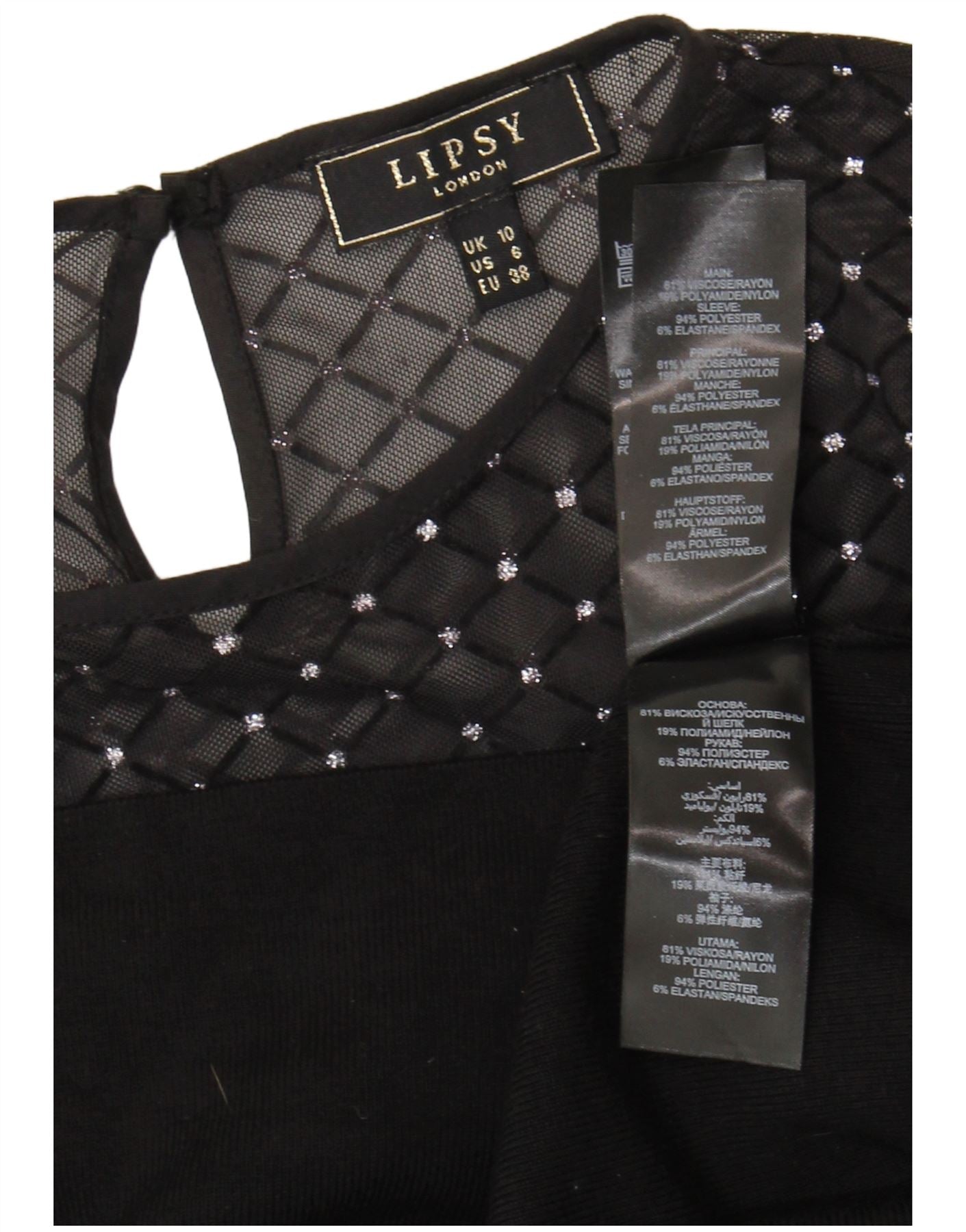 - Описание ИИ: Женский свитер-джемпер Lipsy изготовлен из черной смесовой ткани, которая обеспечивает комфортную эластичность. Верхняя часть украшена прозрачной отделкой с геометрическим рисунком. Имеет классический круглый вырез и длинные рукава. Правильная посадка обеспечивает привлекательный силуэт. Прозрачная отделка элегантно украшена шипами, добавляющими современный графический акцент. Этот дизайн пуловера сочетает в себе комфорт и современный стиль.