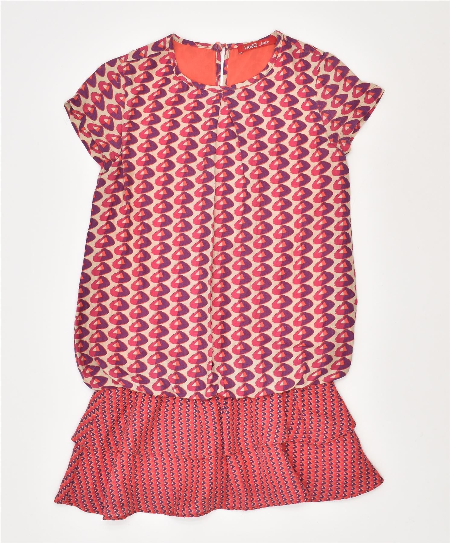 LIU JO Туника с баской для девочек, топ 7–8 лет, красная вискоза с геометрическим рисунком