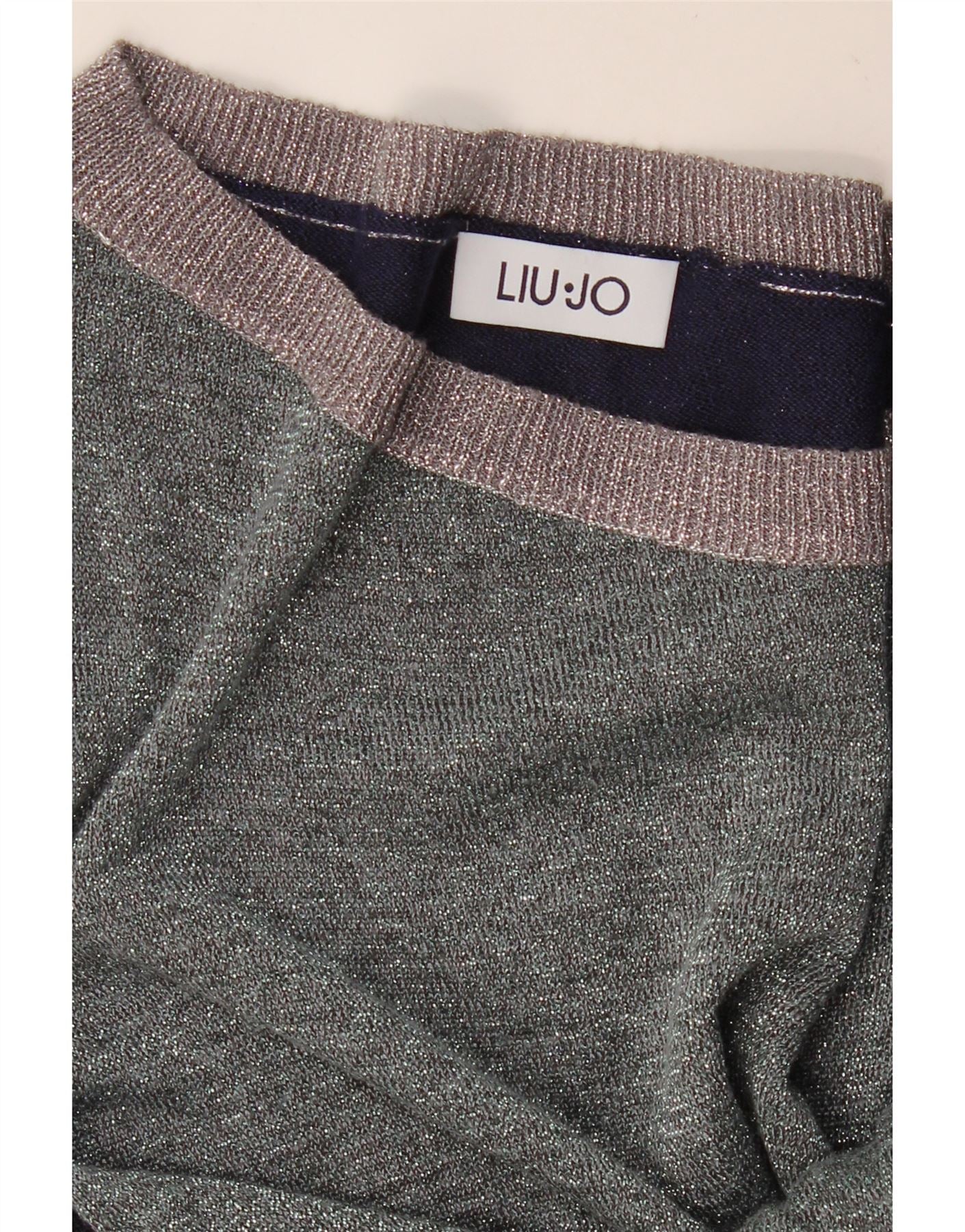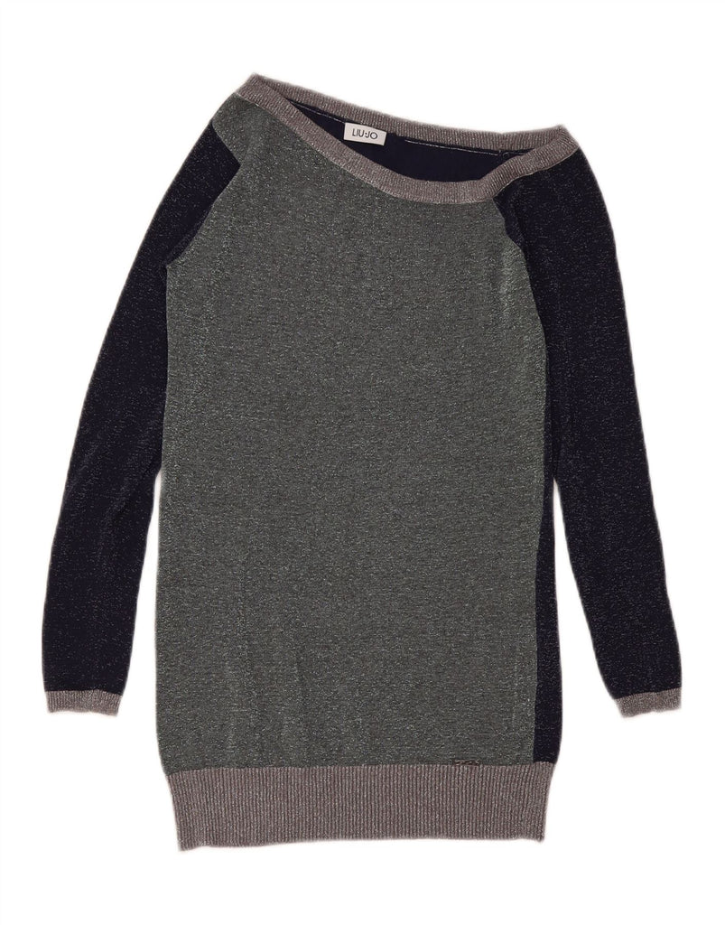 LIU JO Womens Boat Neck Jumper Sweater UK 10 Small Navy Blue Colourblock