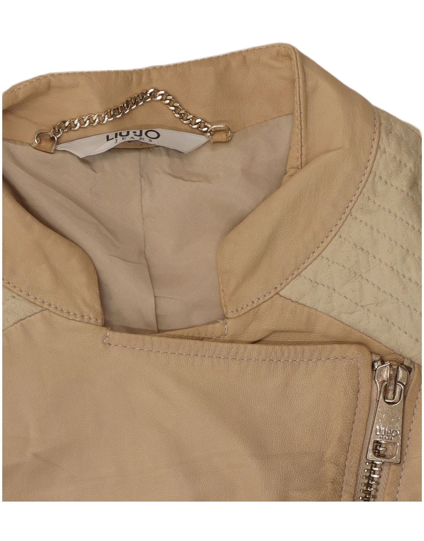 Женская укороченная байкерская куртка Liu Jo IT 42, кожа среднего бежевого цвета с цветными блоками