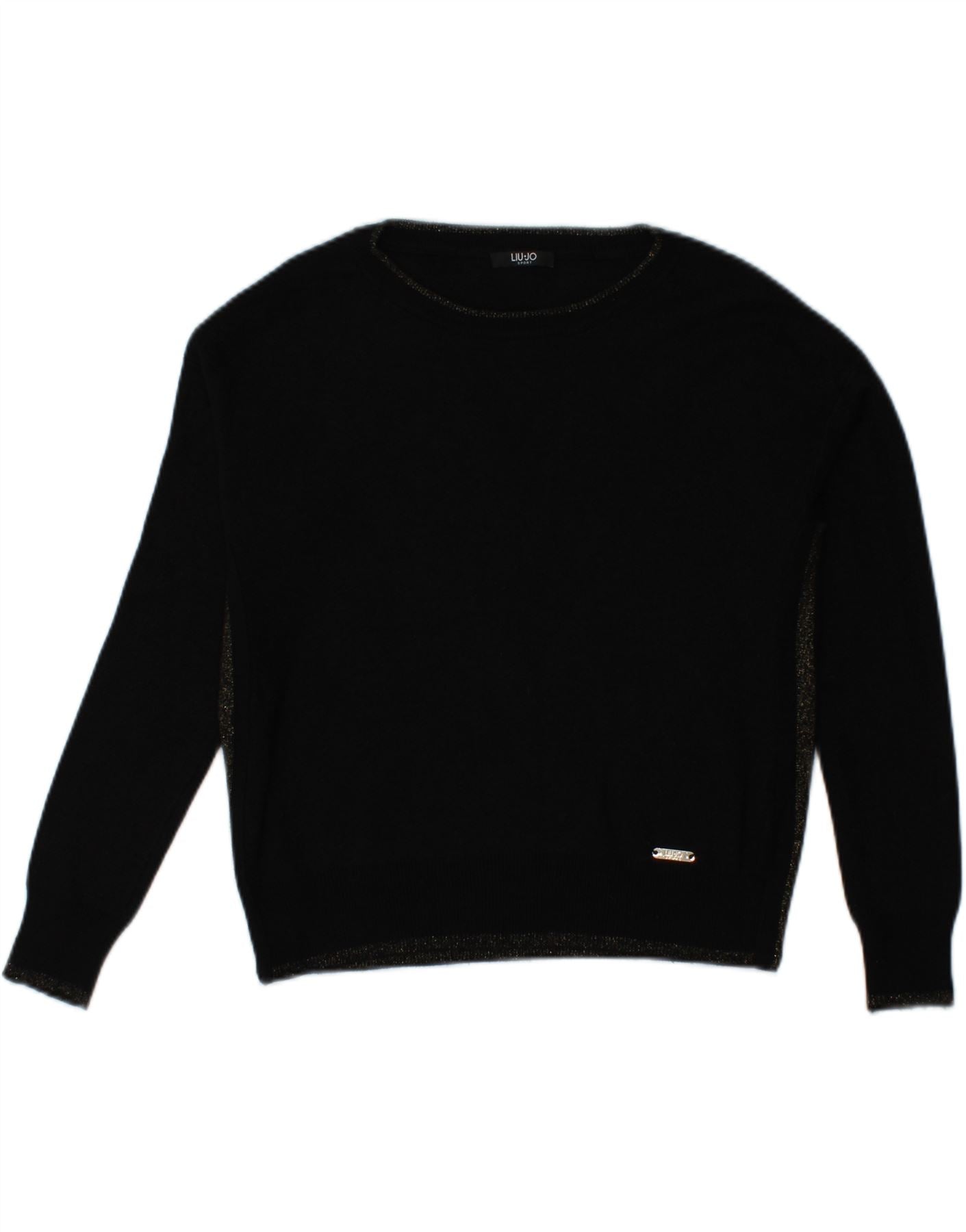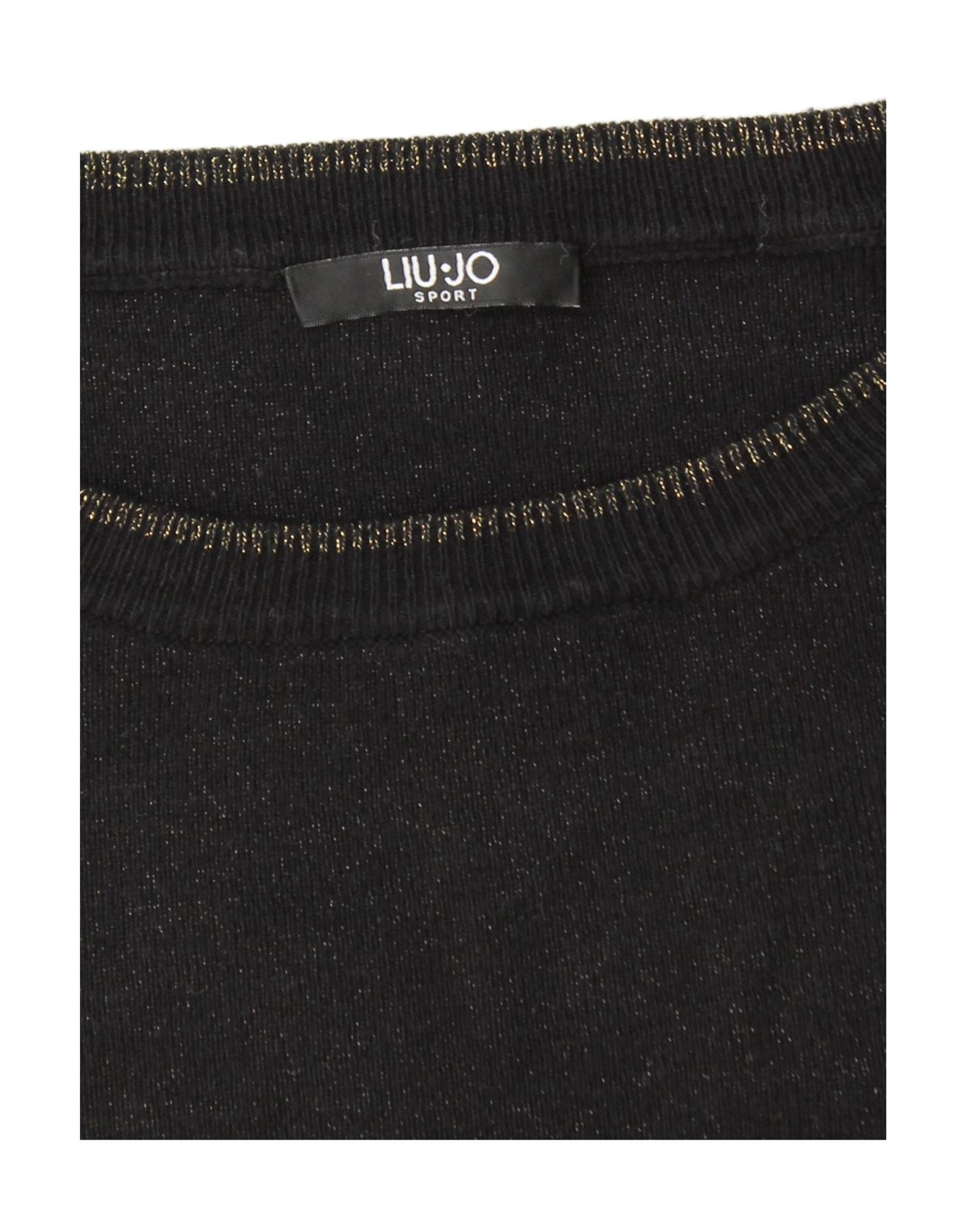 LIU JO Womens Crop Boat Neck Jumper Sweater UK 12 Medium Black Flecked