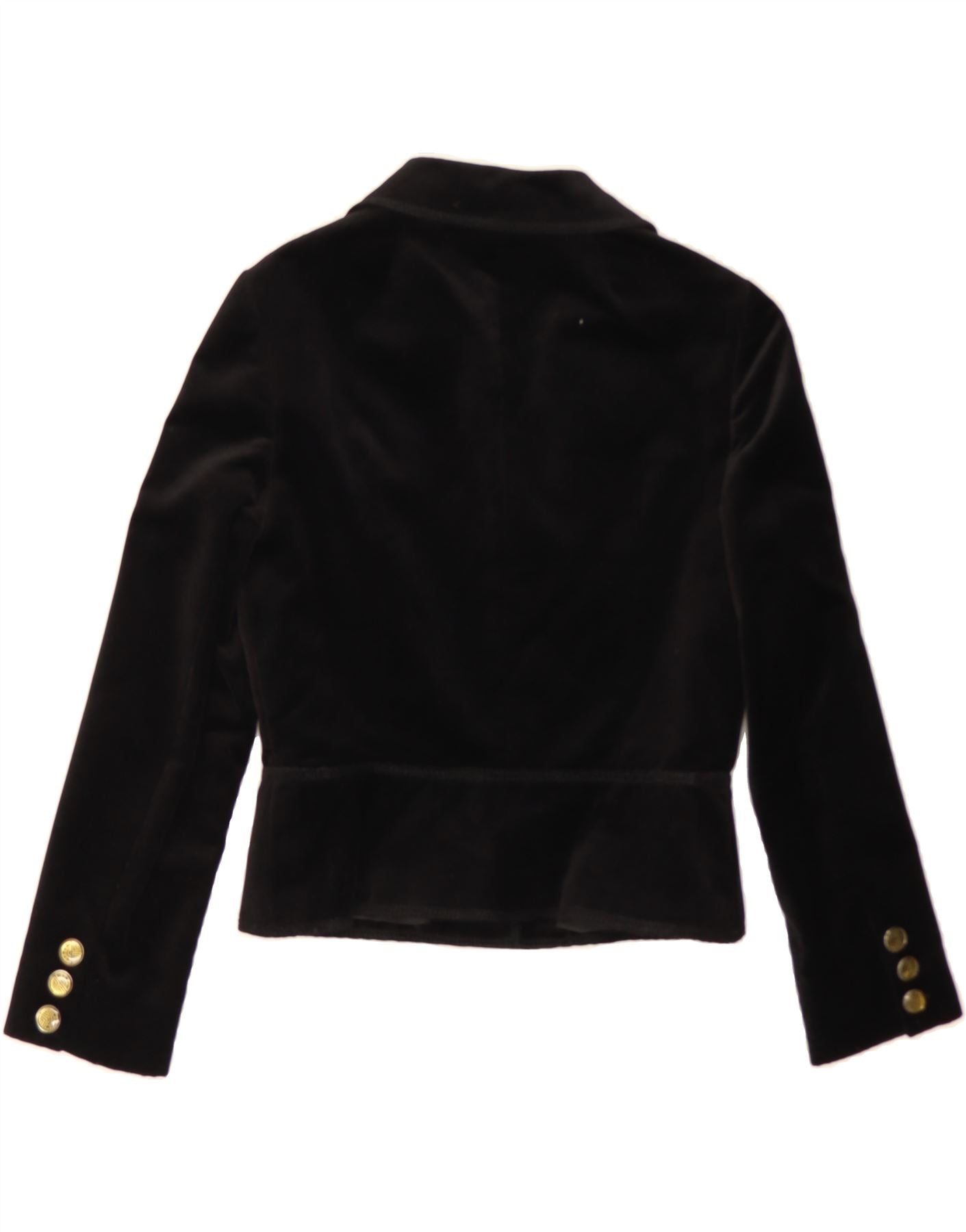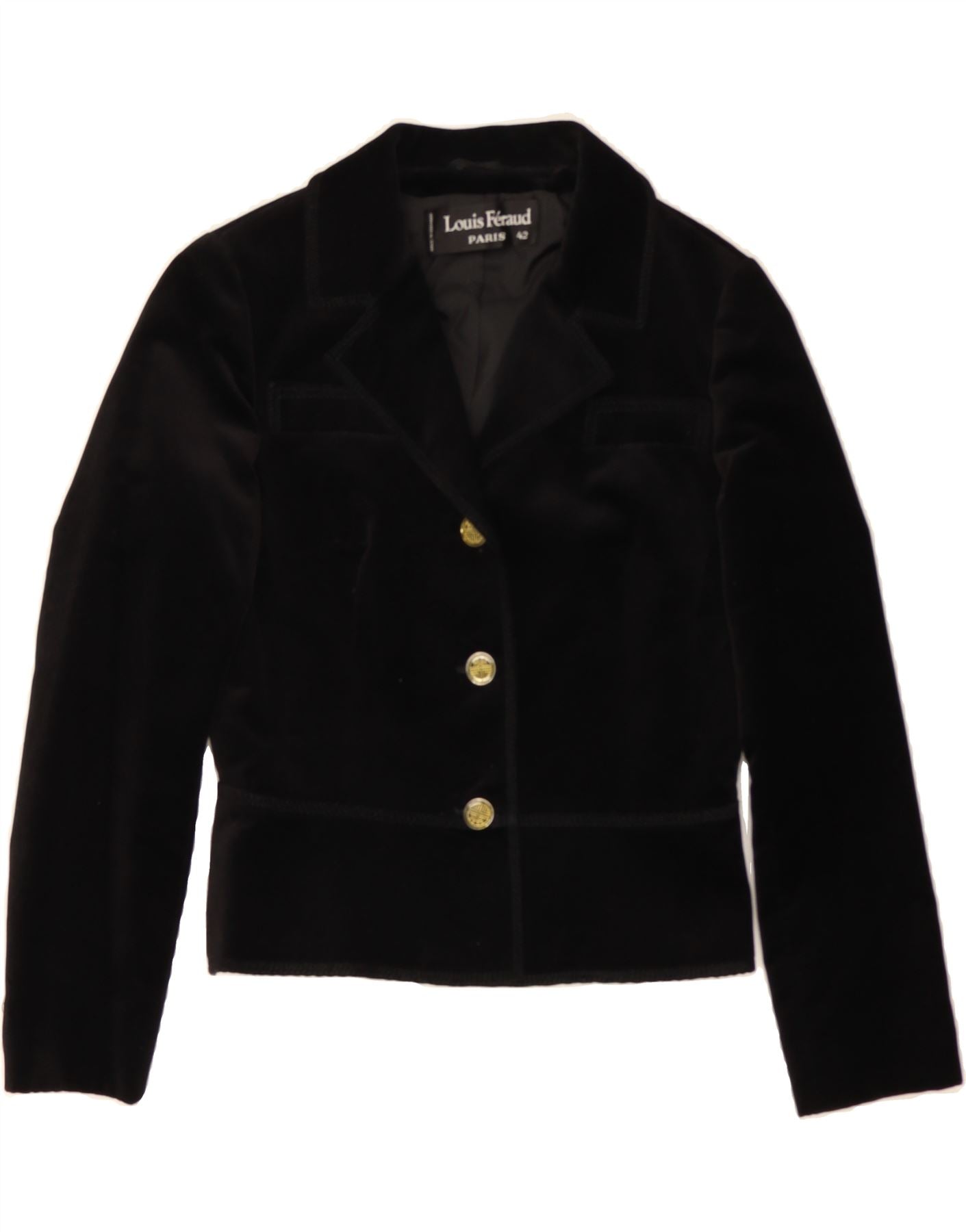LOUIS FERAUD Womens Crop 3 Button Blazer Jacket EU 42 Large Black Cotton