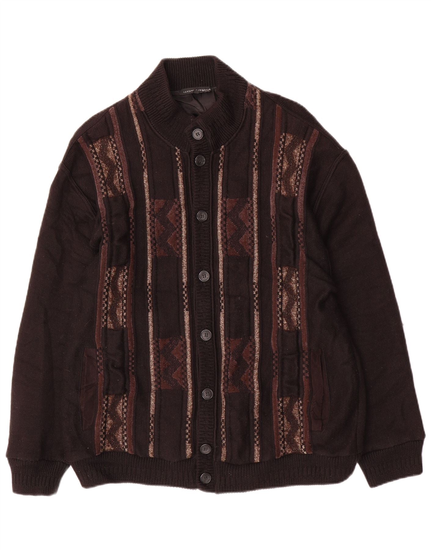LUCIANO CHIARI Мужской кардиган-свитер IT 52, большой черный, шерсть с геометрическим узором