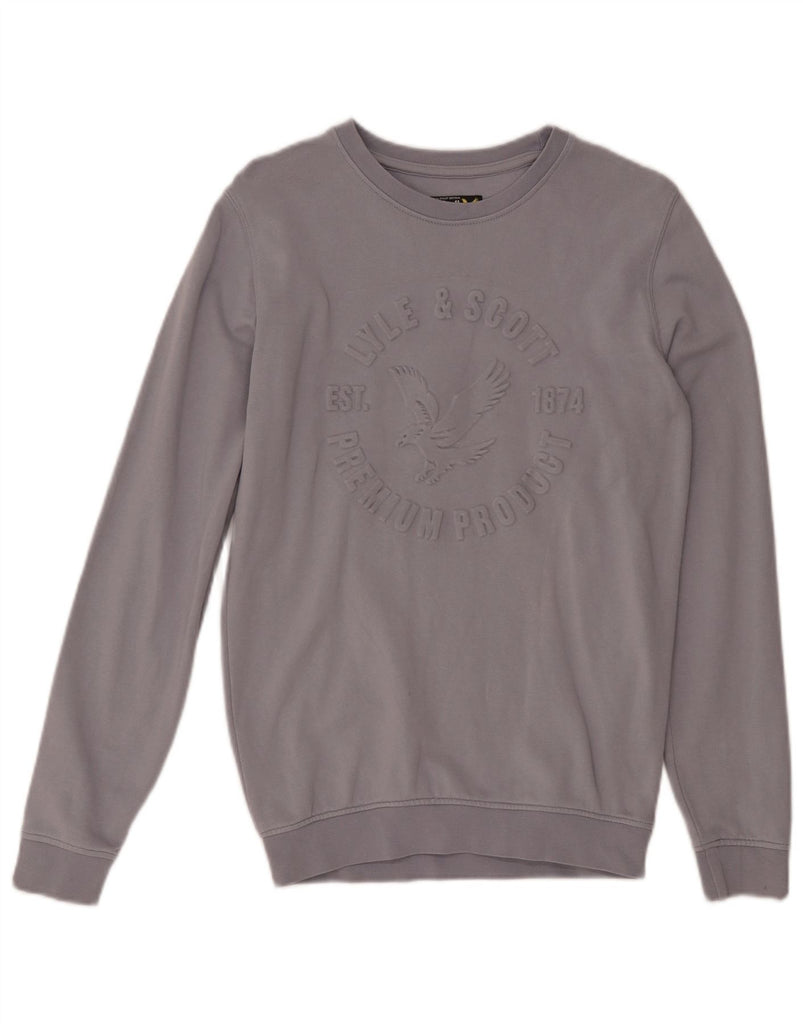 LYLE & SCOTT Boys Graphic Sweatshirt Jumper 12-13 Years Grey Cotton