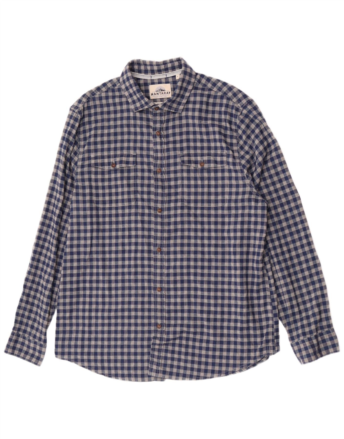 - Описание ИИ: Мужская фланелевая рубашка Mantaray изготовлена из мягкой фланелевой ткани. Модель имеет классический темно-синий и серый узор в клетку. Вырез с воротником и застежка на пуговицы спереди создают неподвластный времени образ. Длинные рукава и два нагрудных кармана добавляют практичности. Регулярная посадка обеспечивает удобство ношения и универсальный стиль.