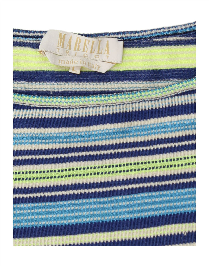 MARELLA Womens Crop Top 3/4 Sleeve UK 14 Large Multicoloured Striped