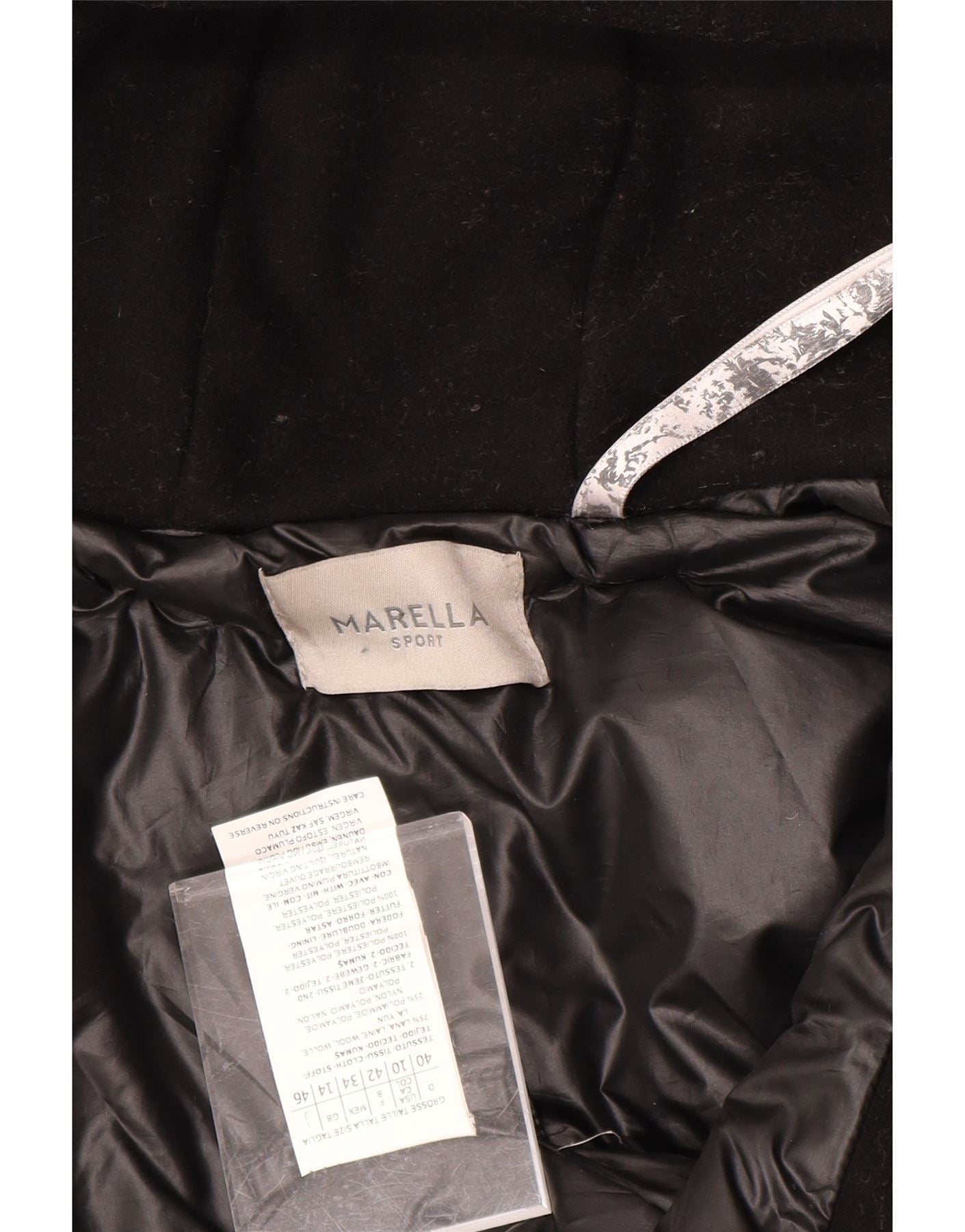 MARELLA Womens Hooded Padded Coat UK 14 Medium Black Colourblock Wool