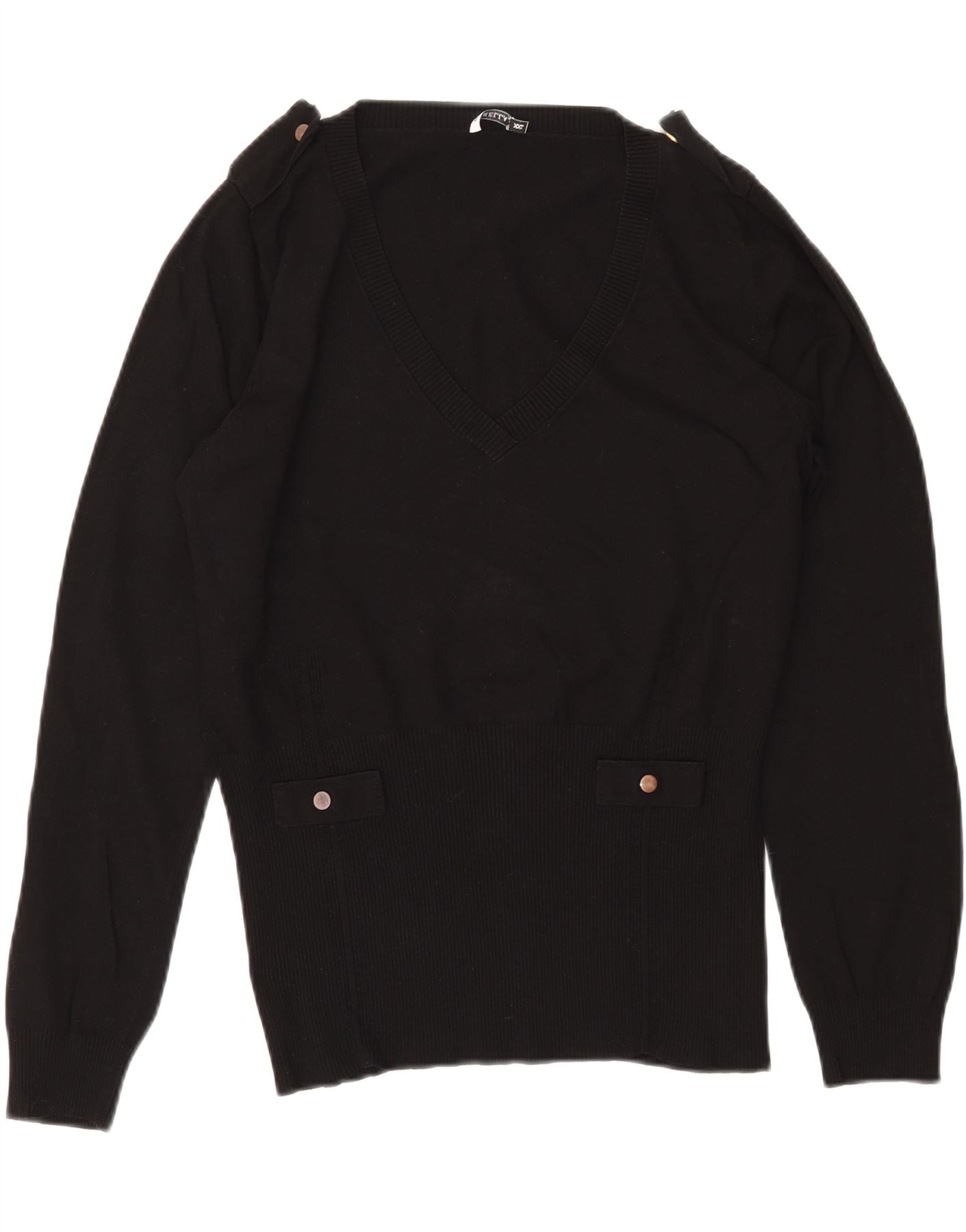 Женский джемпер с v-образным вырезом в стиле милитари MARELLA UK 20 2XL, черный вискоза