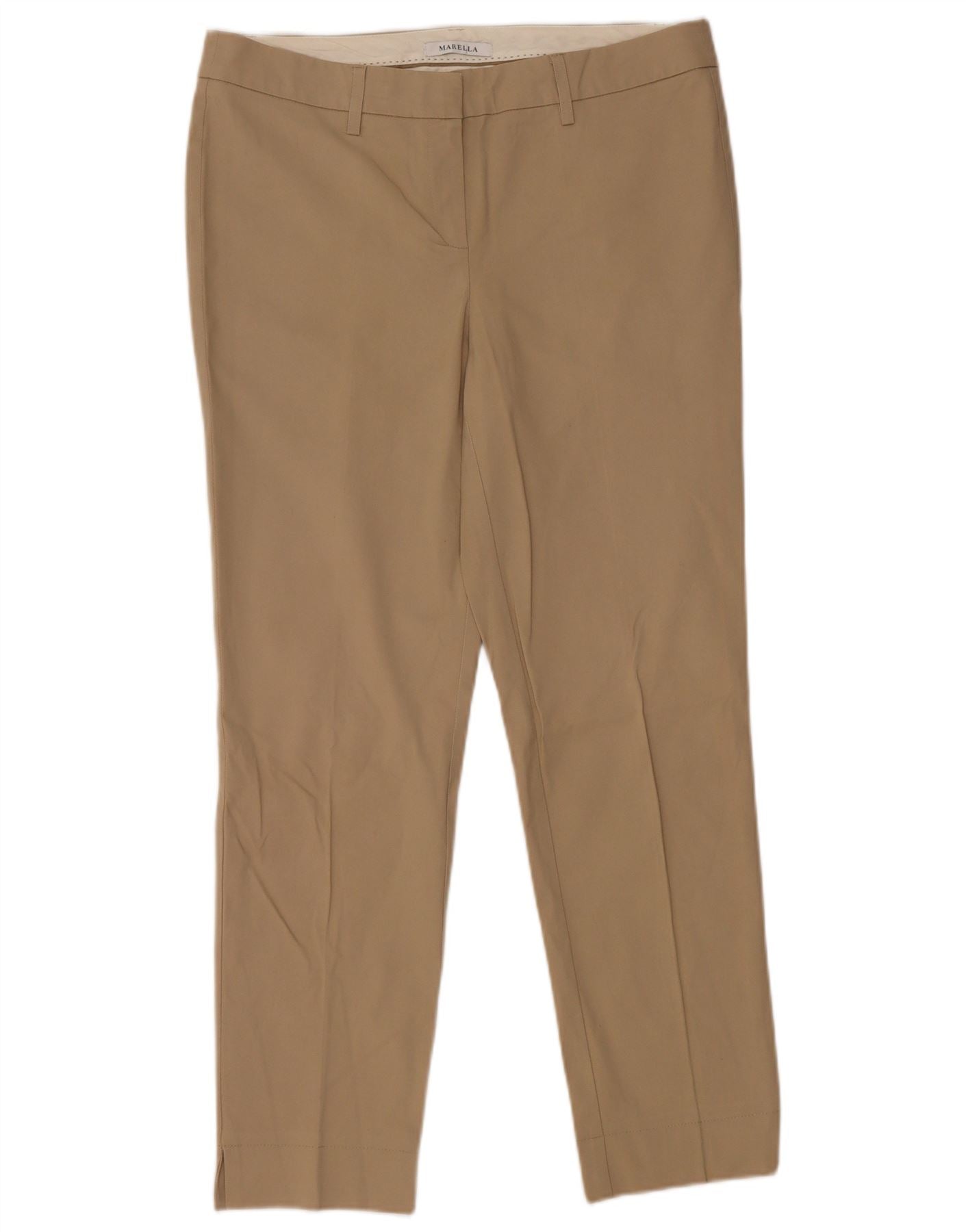 MARELLA Womens Slim Casual Trousers UK 14 Large W34 L28 Beige Cotton