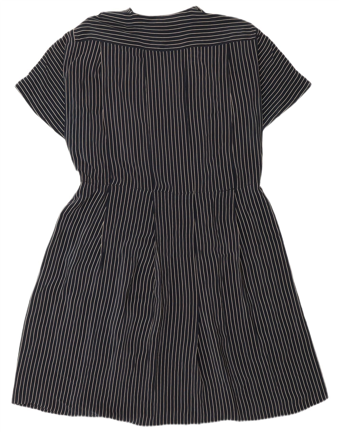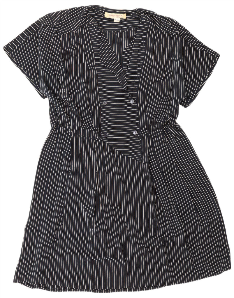 MARINA RINALDI Womens A-Line Dress Size 19 Small Navy Blue Pinstripe Silk