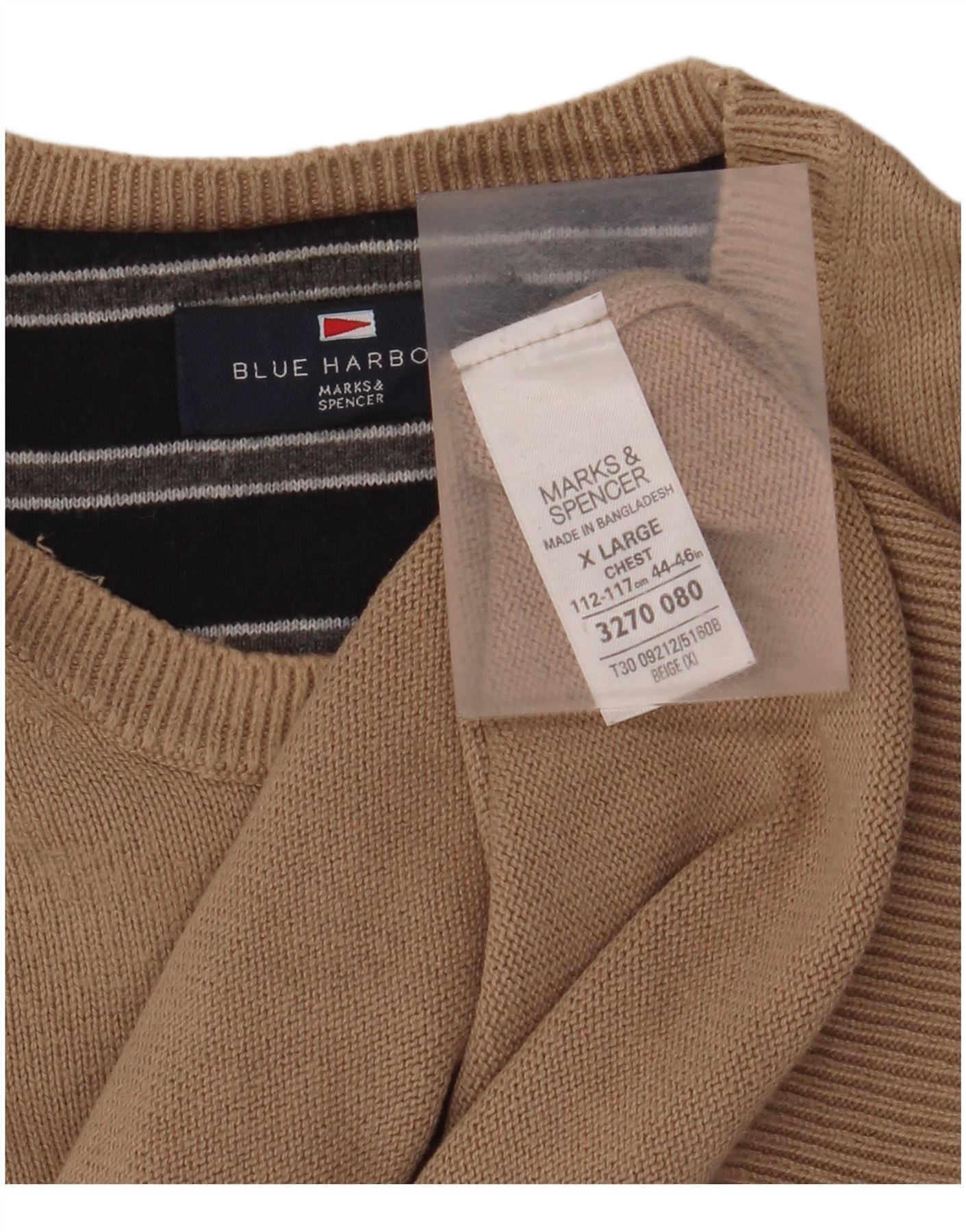 Мужской джемпер с круглым вырезом MARKS & SPENCER, синий, XL, хлопок, бежевый