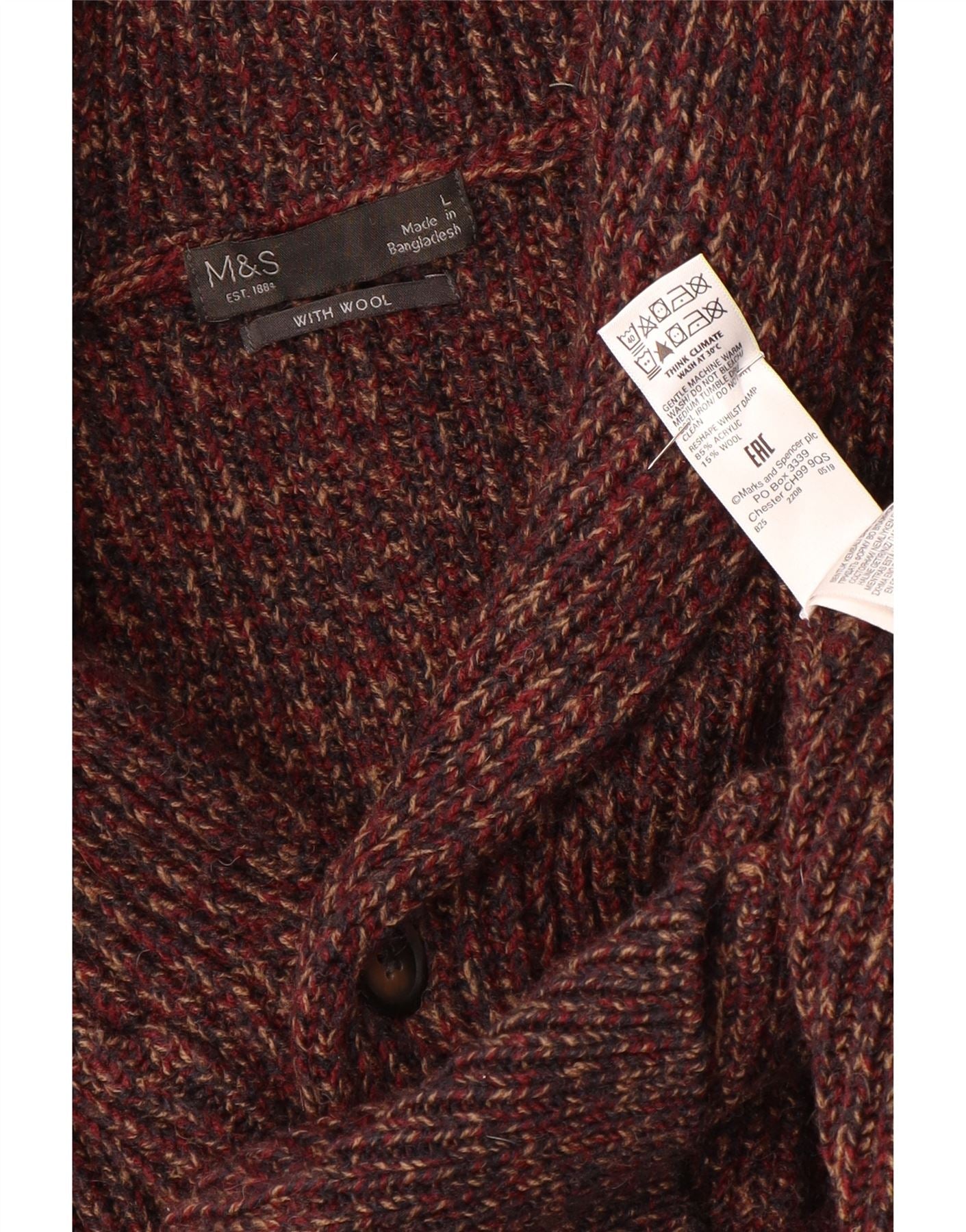 Мужской свитер-кардиган MARKS & SPENCER, большой бордовый, акрил с крапинками