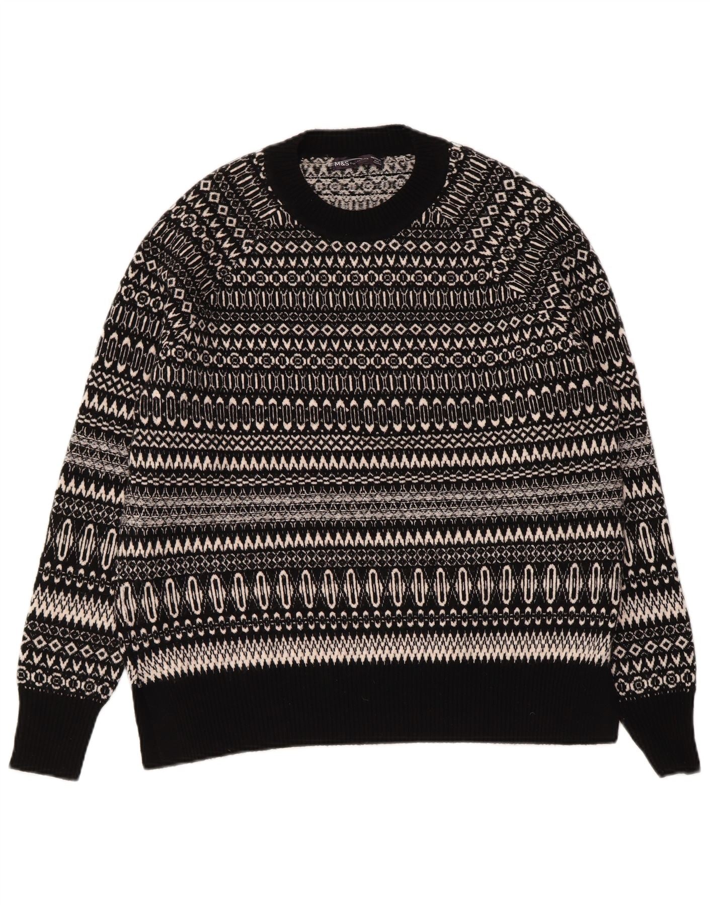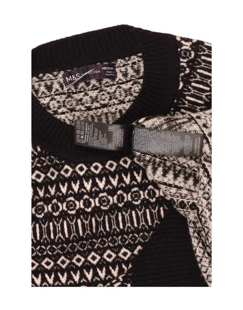 Мужской джемпер с круглым вырезом MARKS & SPENCER, средний черный с жаккардовым узором