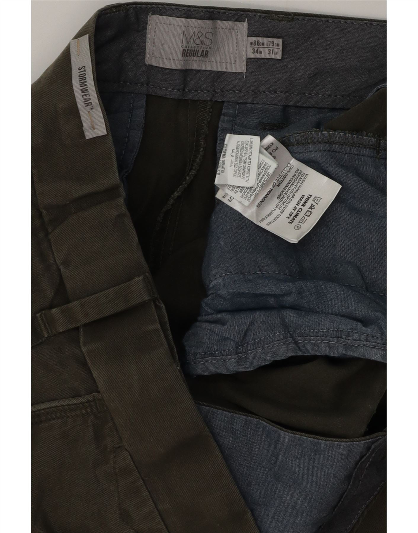 Мужские брюки чиносы MARKS & SPENCER стандартного кроя W34 L29 хаки, хлопок