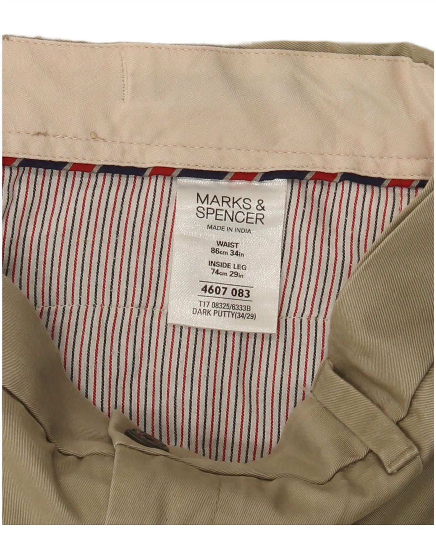 Мужские прямые брюки-чиносы MARKS & SPENCER W34 L29, бежевый хлопок