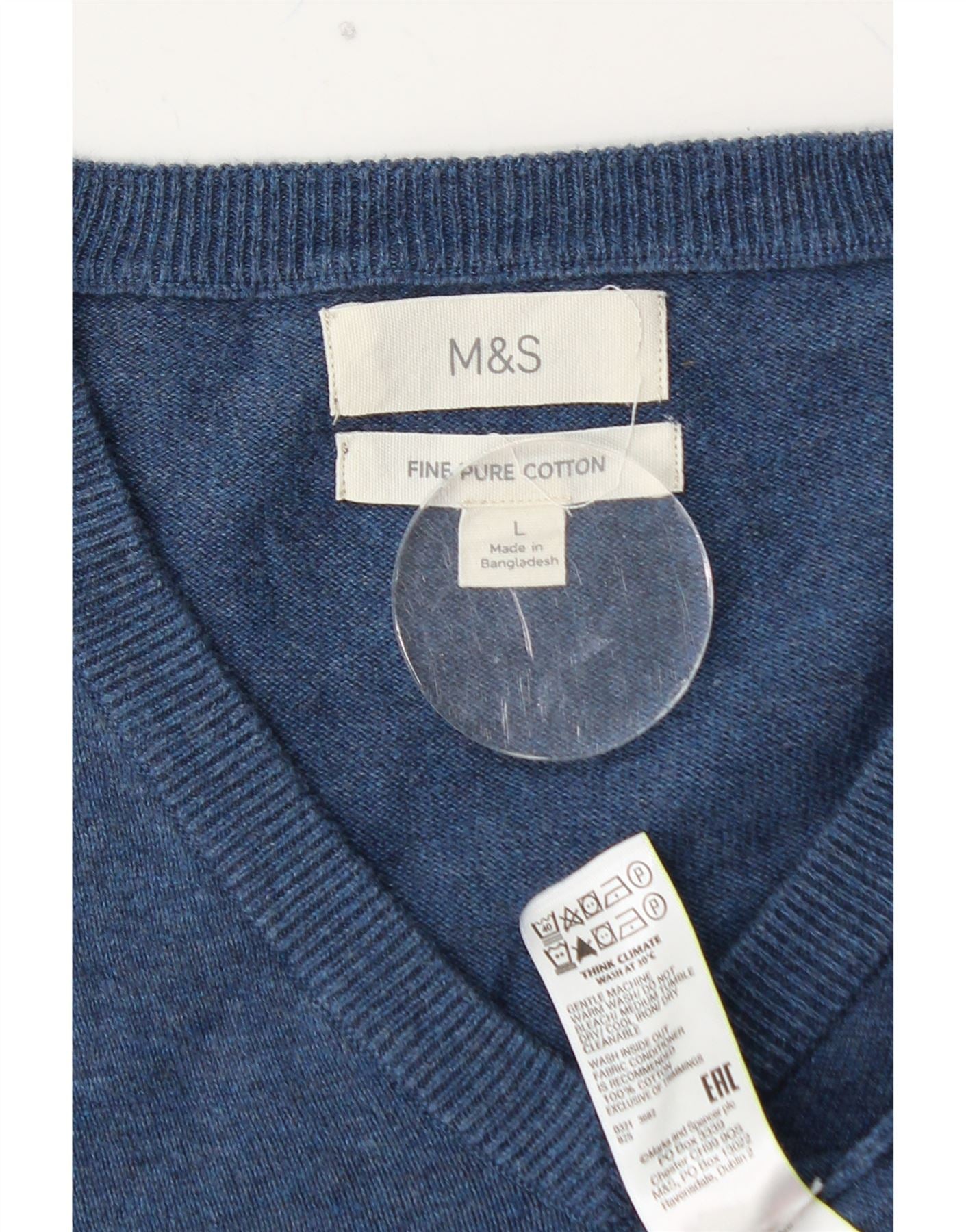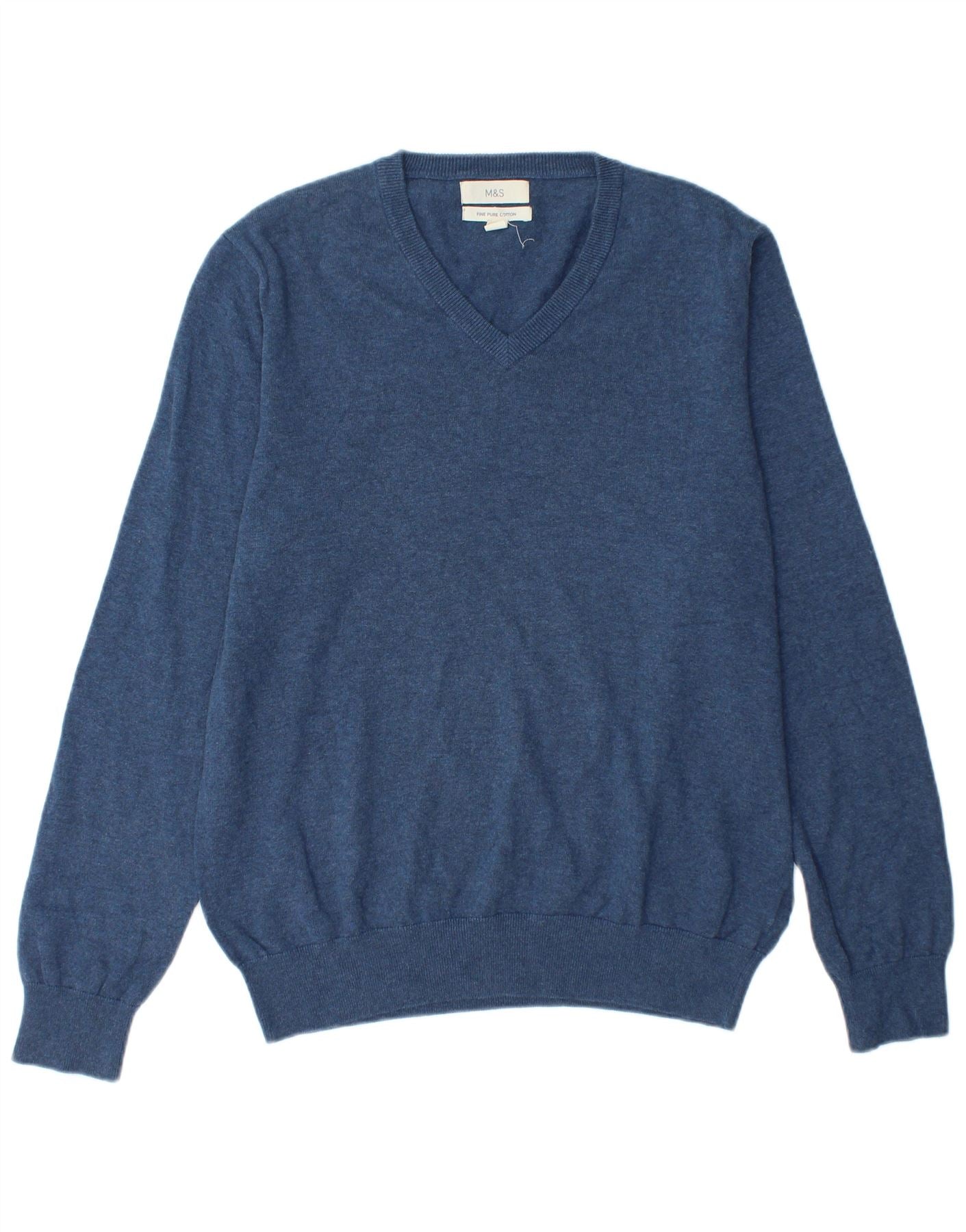 Мужской джемпер с v-образным вырезом MARKS & SPENCER, большой синий хлопковый свитер