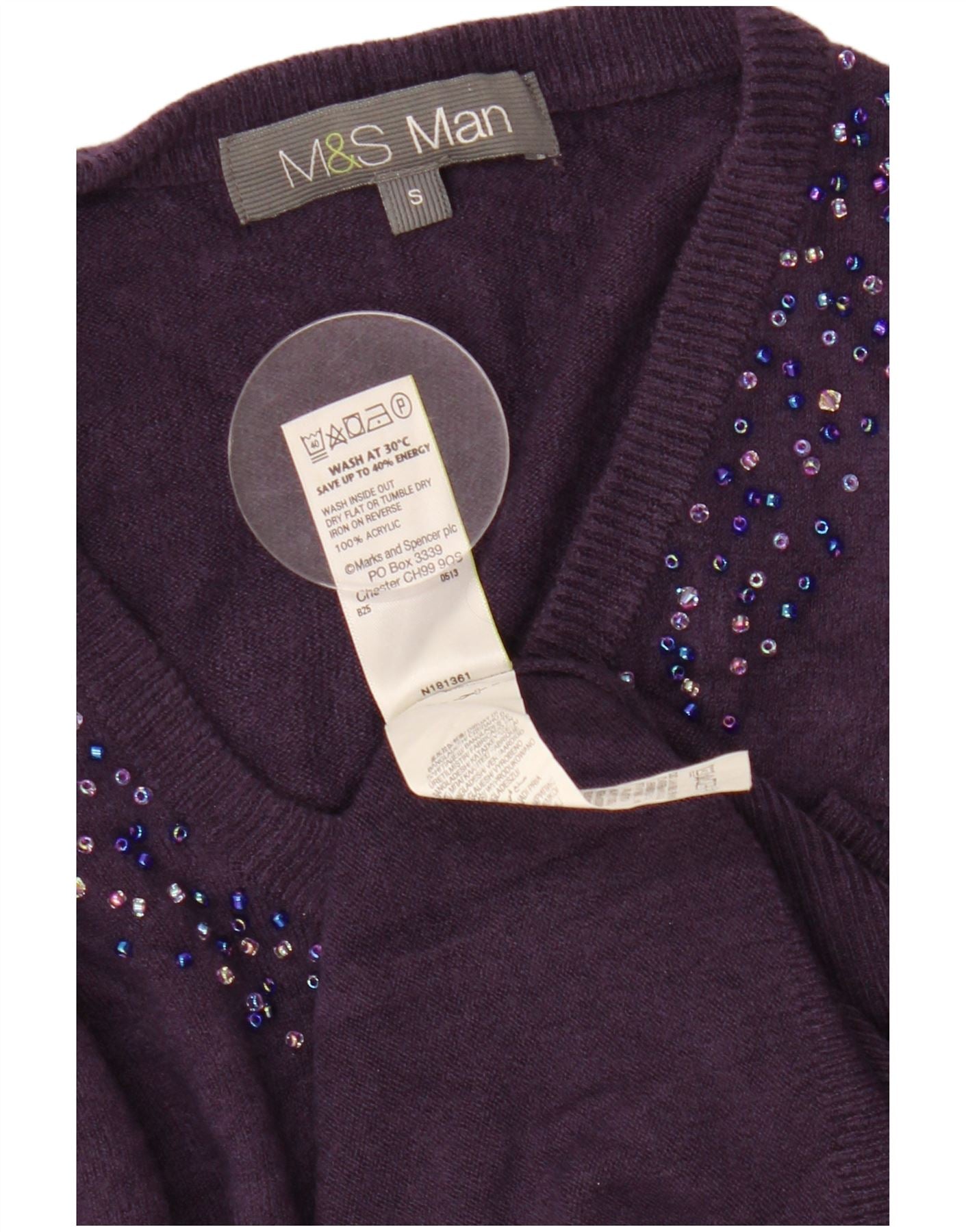 Мужской джемпер с v-образным вырезом MARKS & SPENCER, маленький фиолетовый, акрил