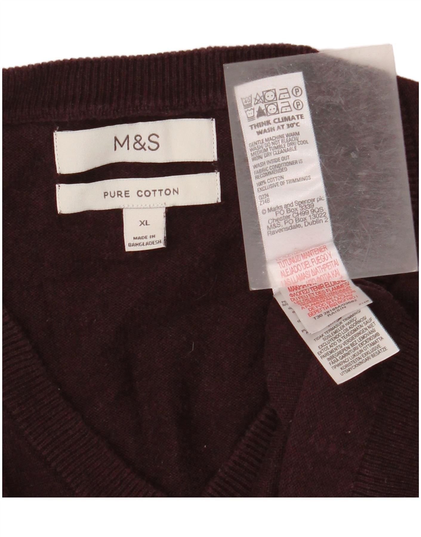 Мужской джемпер с v-образным вырезом Marks & Spencer XL бордовый хлопок