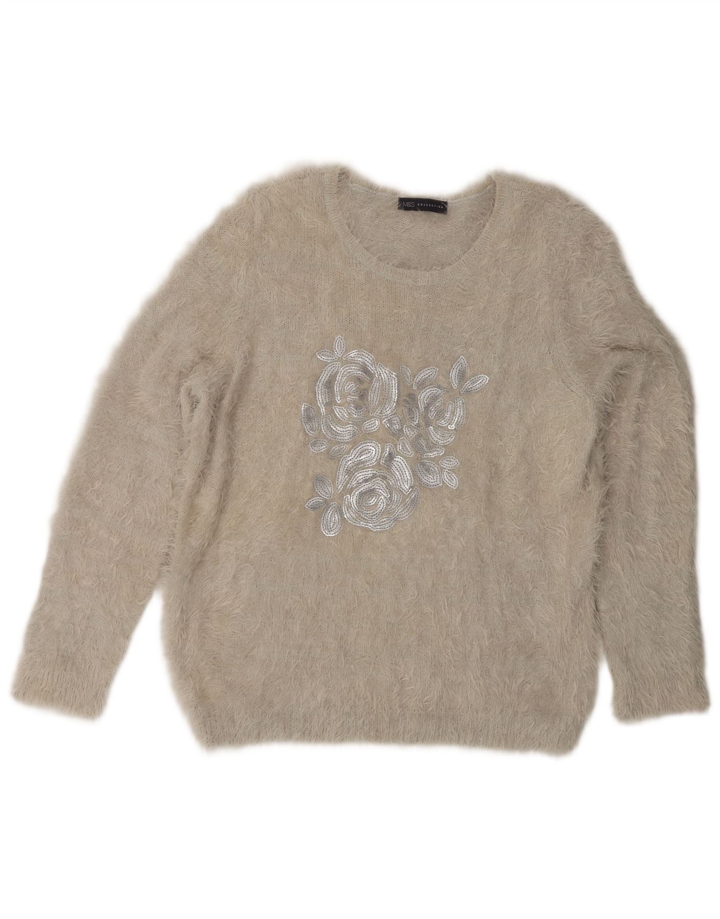Женский джемпер с вырезом «лодочка» Marks & Spencer, Великобритания 16, большой серый с цветочным принтом