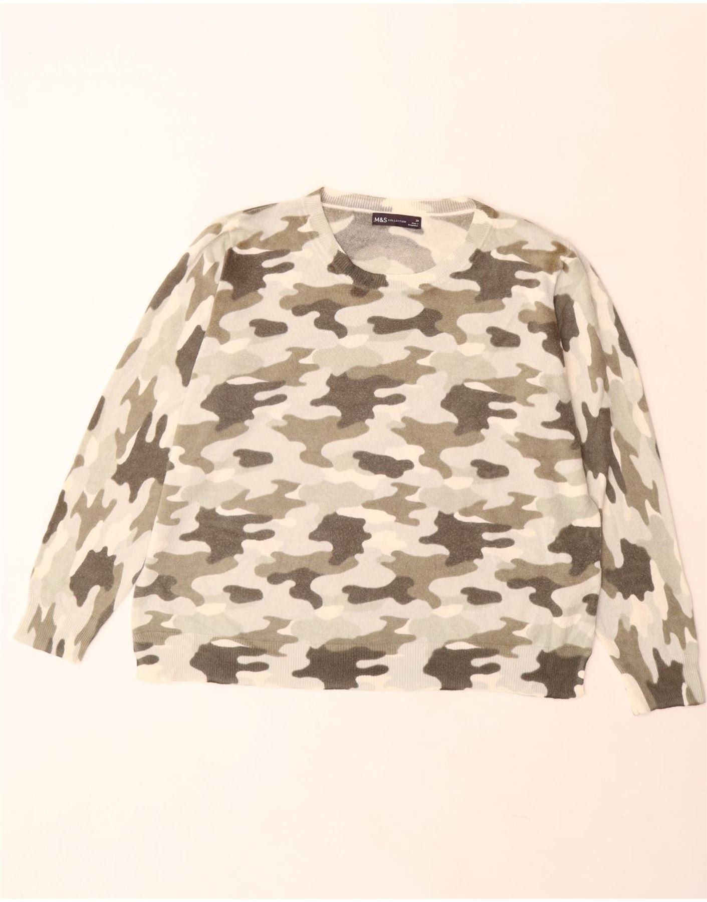 Женский джемпер с вырезом «лодочка» MARKS & SPENCER UK 20 2XL, бежевый камуфляж