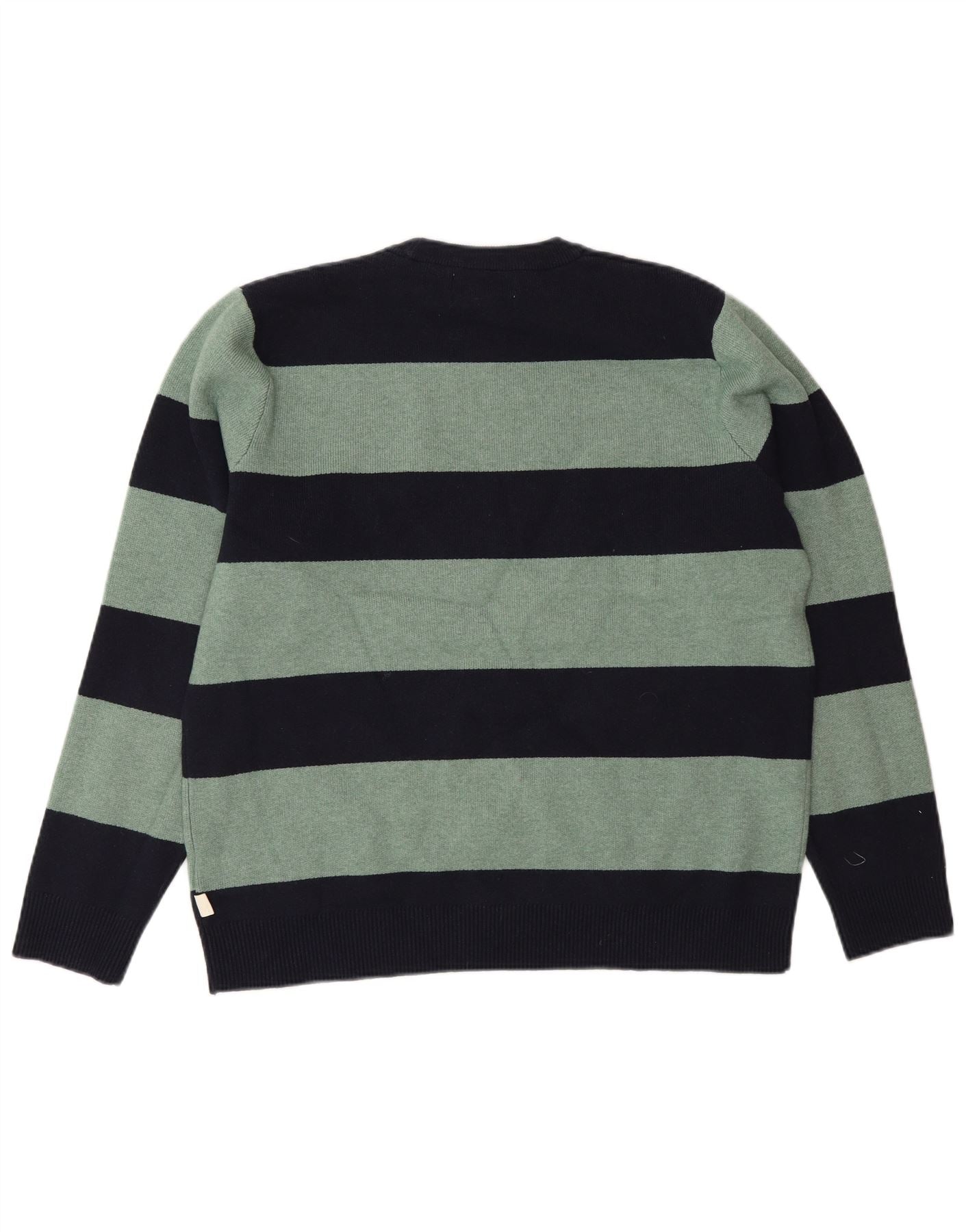 - Описание ИИ: Женский джемпер с круглым вырезом Marks and Spencer выполнен из мягкого смесового хлопка. Он имеет классический полосатый узор темно-синего и зеленого цветов. Круглый вырез горловины и длинные рукава создают неподвластный времени силуэт. Рукава и подол с манжетами создают аккуратный вид. Регулярная посадка обеспечивает удобство ношения и делает ее универсальным предметом гардероба.
