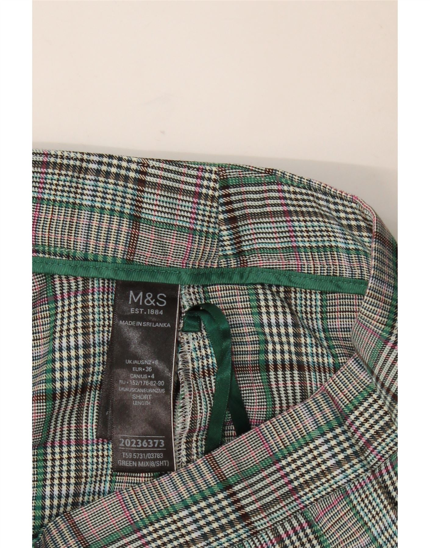 - Описание ИИ: Эти укороченные женские брюки Marks & Spencer изготовлены из гладкой ткани. Они имеют классический клетчатый узор в изысканной разноцветной смеси серого, зеленого и черного цветов. Талия со средней посадкой дополнена эластичной застежкой для комфорта и легкости. Регулярная посадка обеспечивает комфортный силуэт. Укороченная длина создает современный, универсальный стиль, идеально подходящий для элегантной повседневной одежды.