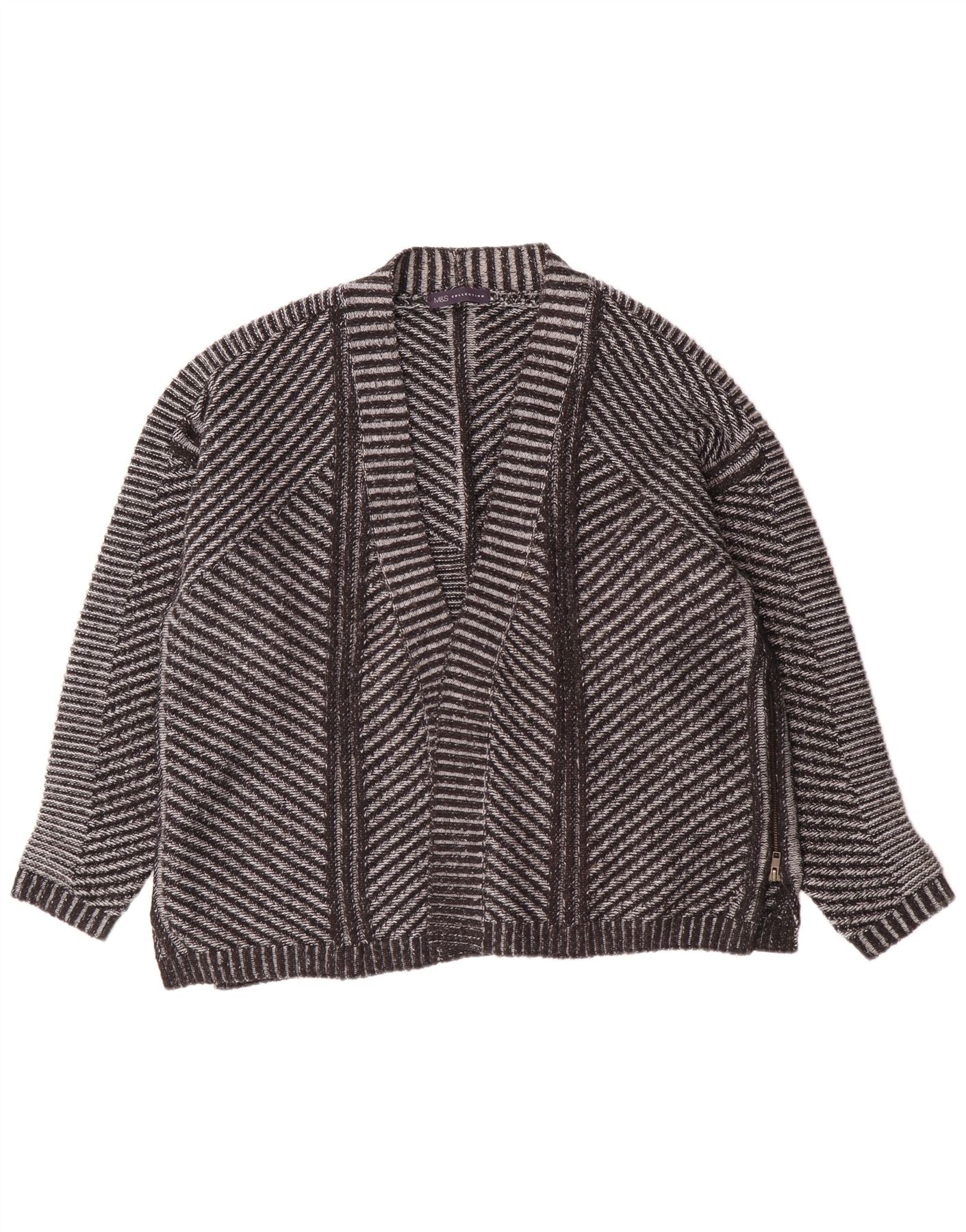 Женский открытый кардиган Marks & Spencer UK 26 5XL, серый акрил в полоску