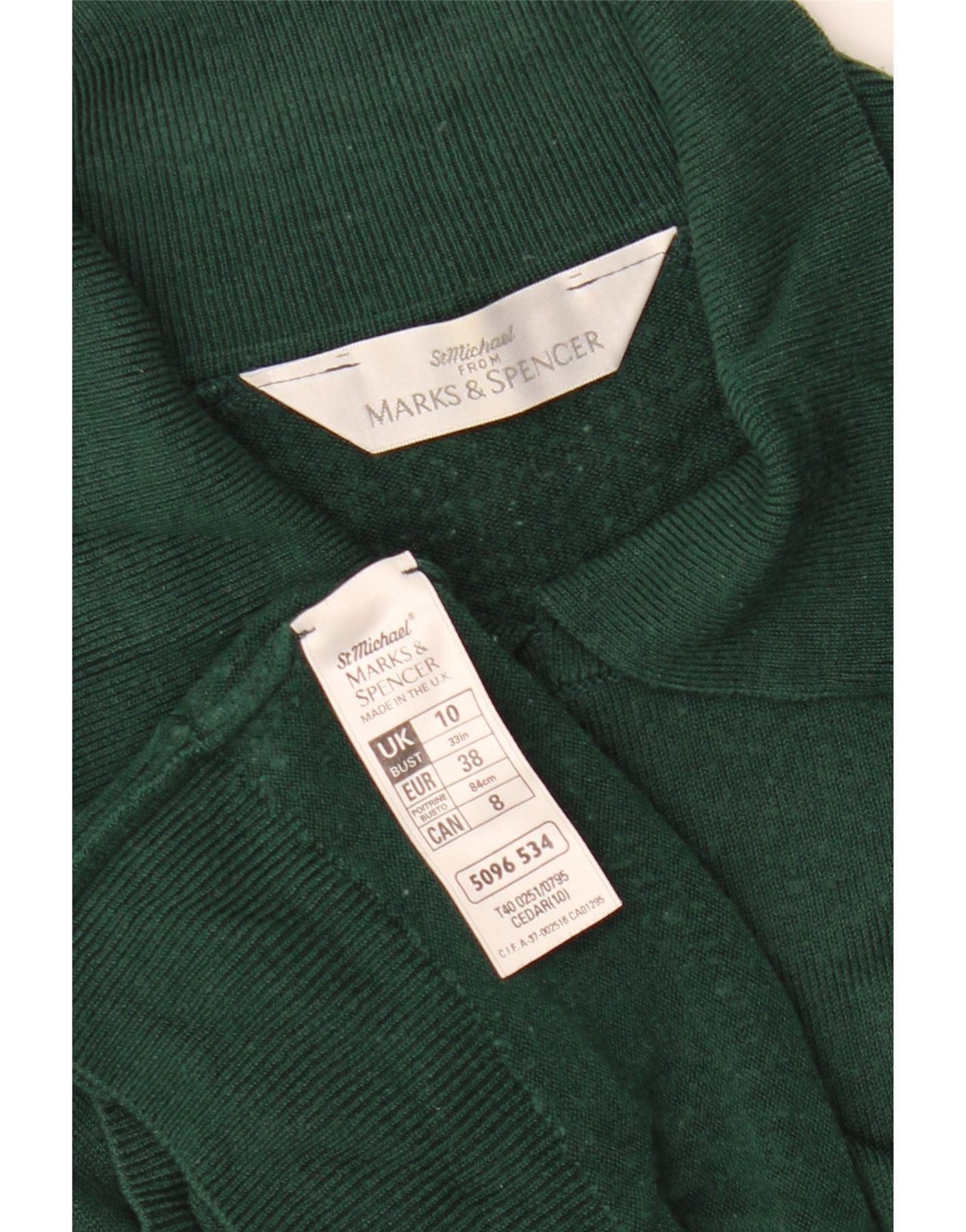 Женский джемпер с воротником-поло MARKS & SPENCER UK 10, маленький зеленый акрил