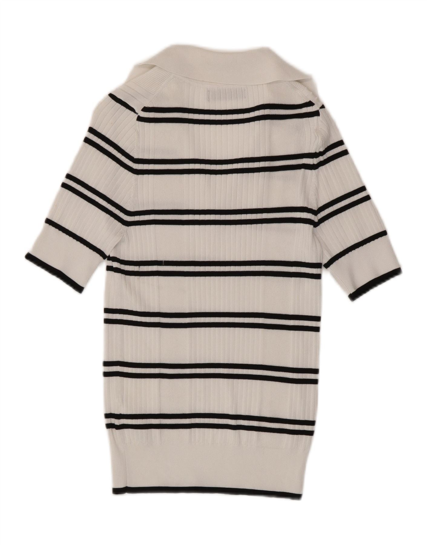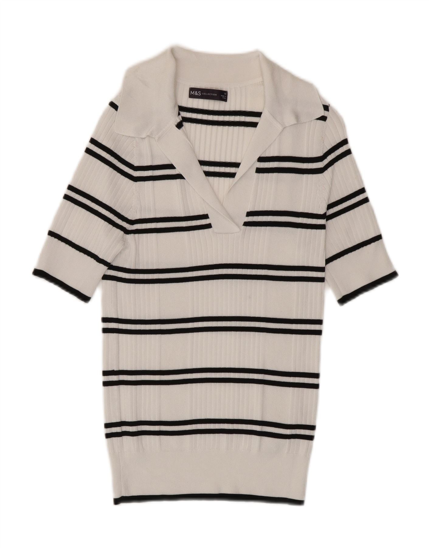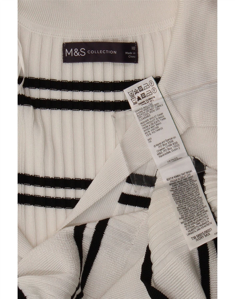 MARKS & SPENCER Womens Polo Neck Jumper Sweater UK 10 Small White Striped