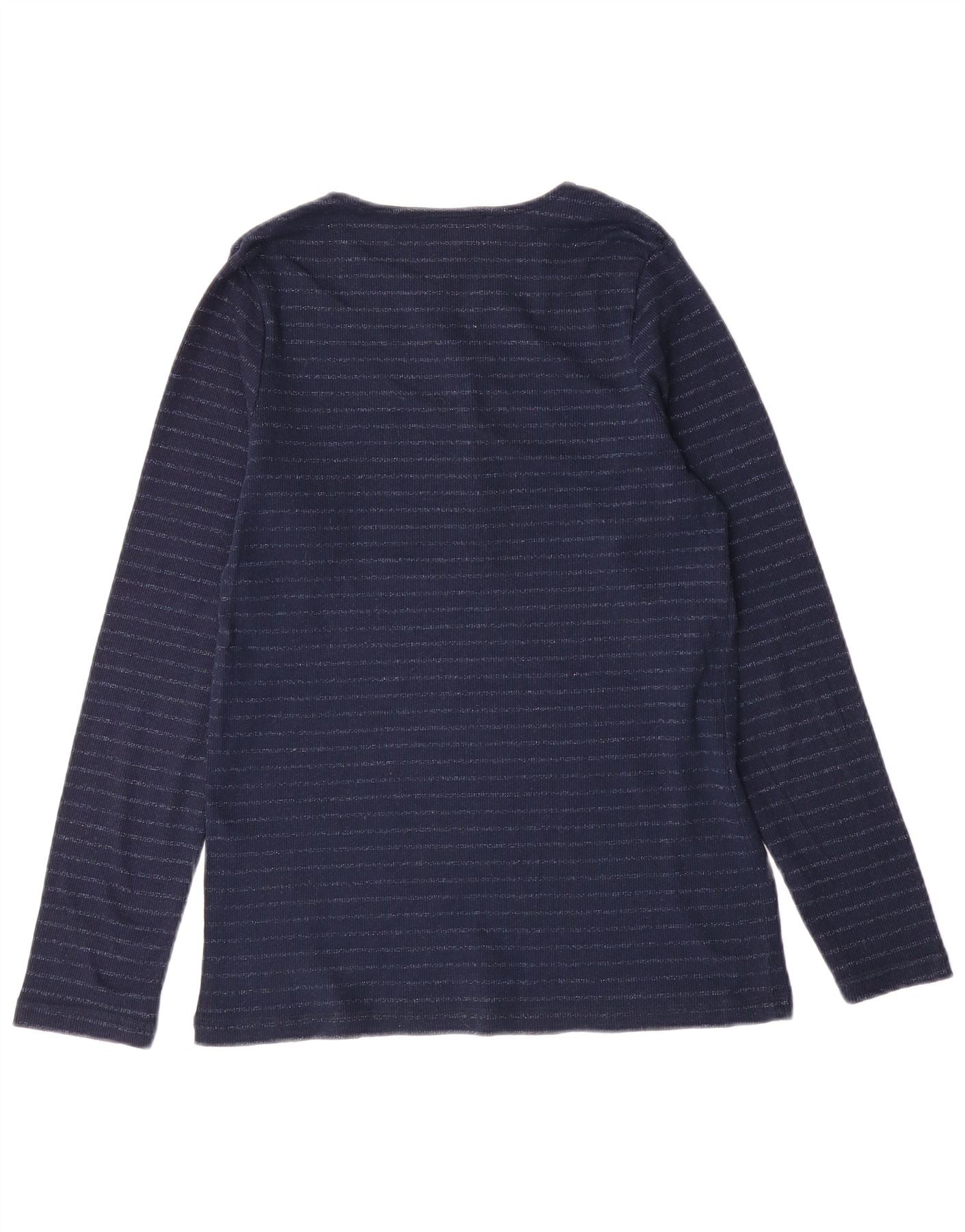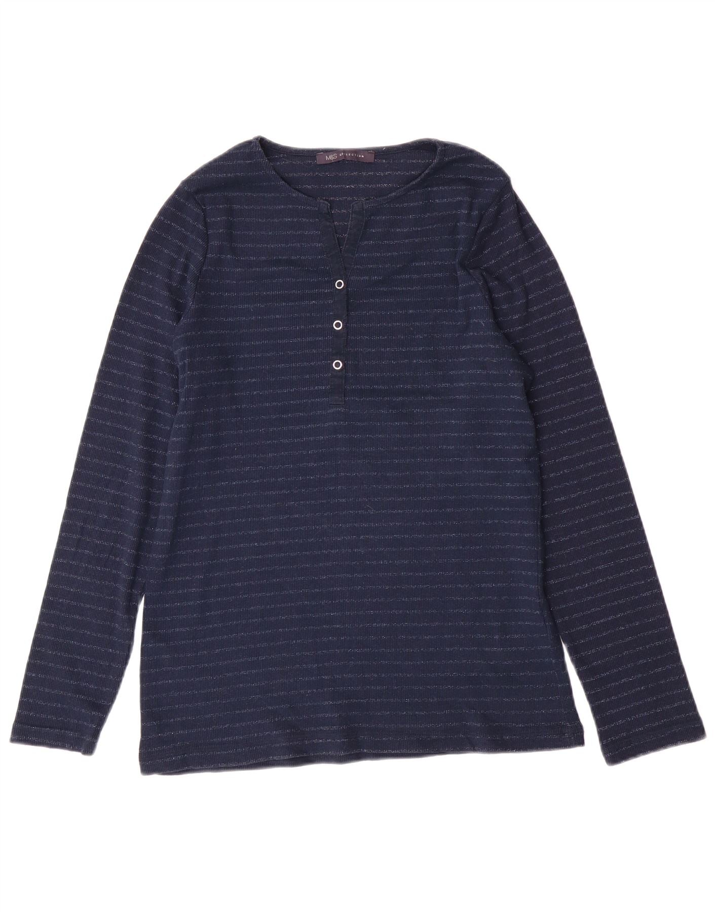 Женский топ с длинным рукавом MARKS & SPENCER UK 14, большой темно-синий в полоску