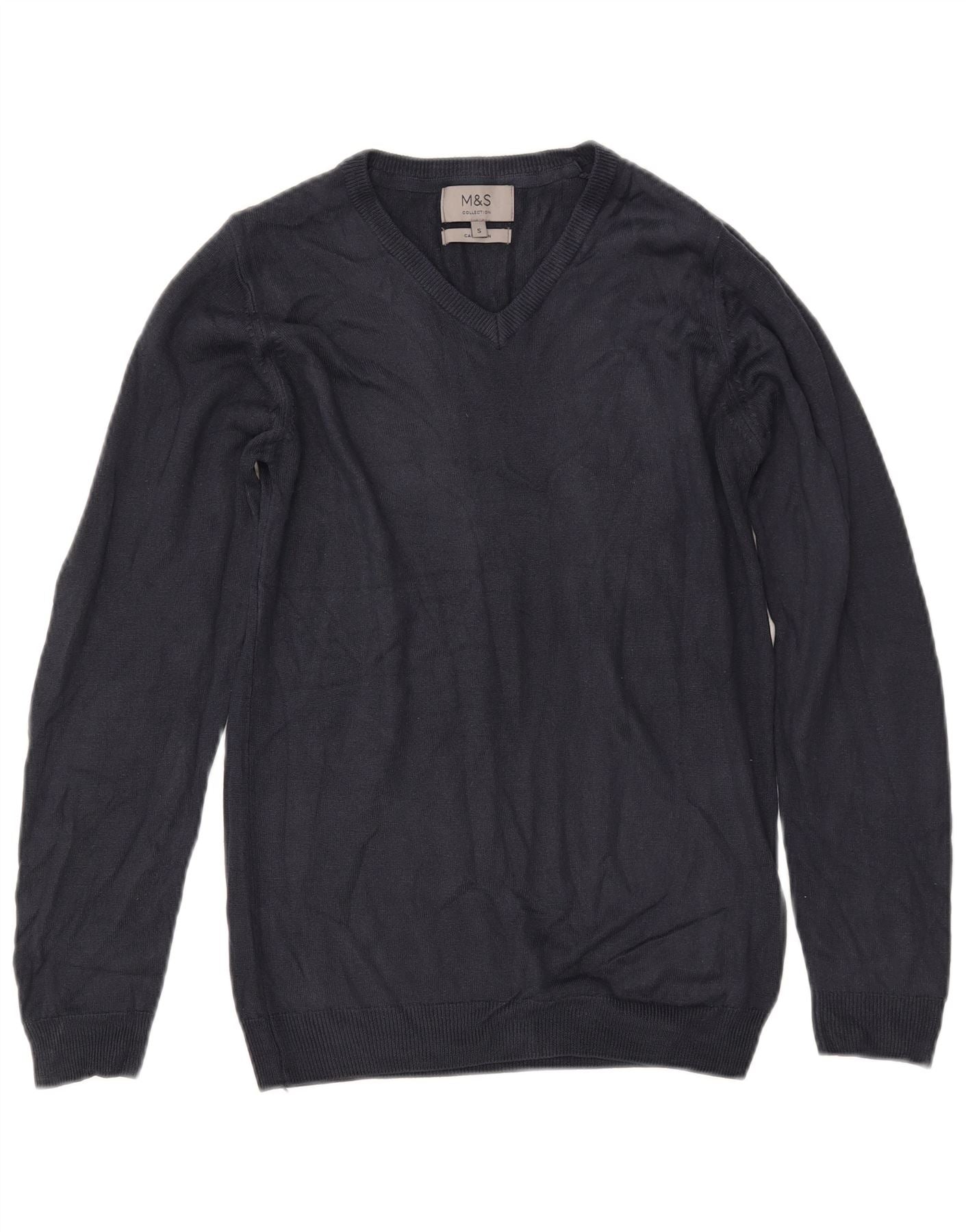 Женский джемпер с v-образным вырезом MARKS & SPENCER, UK 10, маленький, темно-синий, акрил