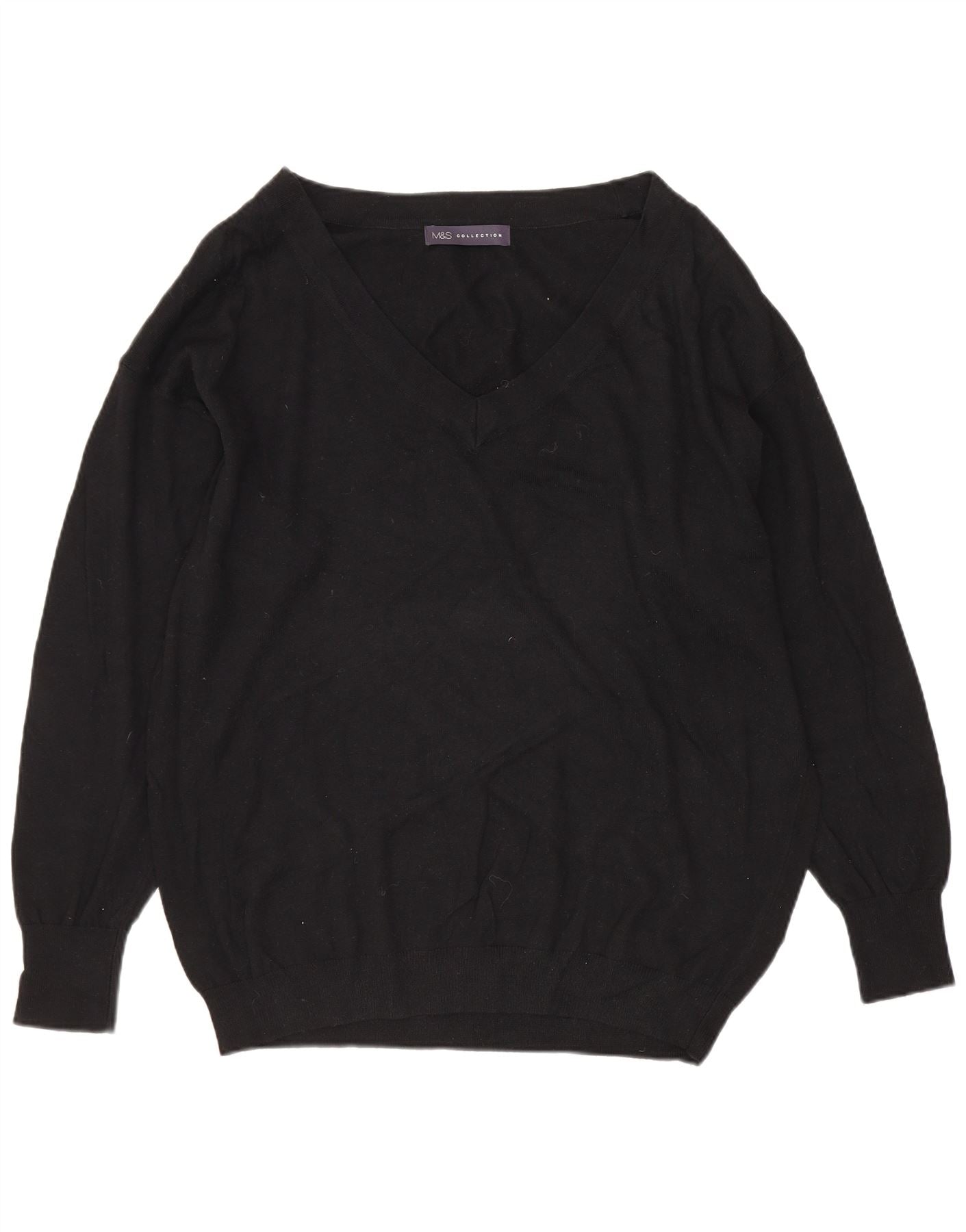 Женский джемпер с v-образным вырезом MARKS & SPENCER UK 14, большой черный хлопок
