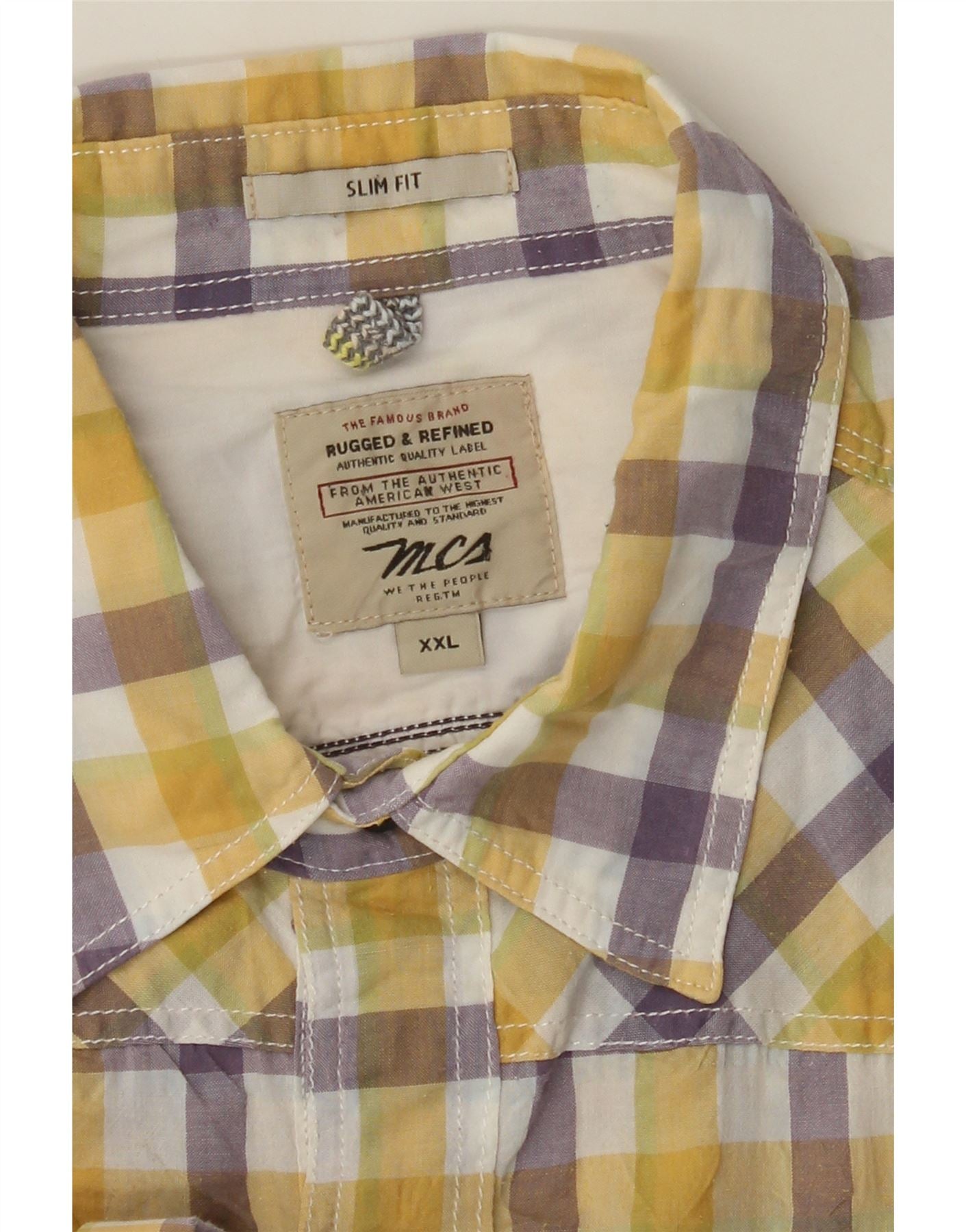 Мужская рубашка Marlboro Classics с коротким рукавом 2XL, желтая, хлопок в мелкую клетку