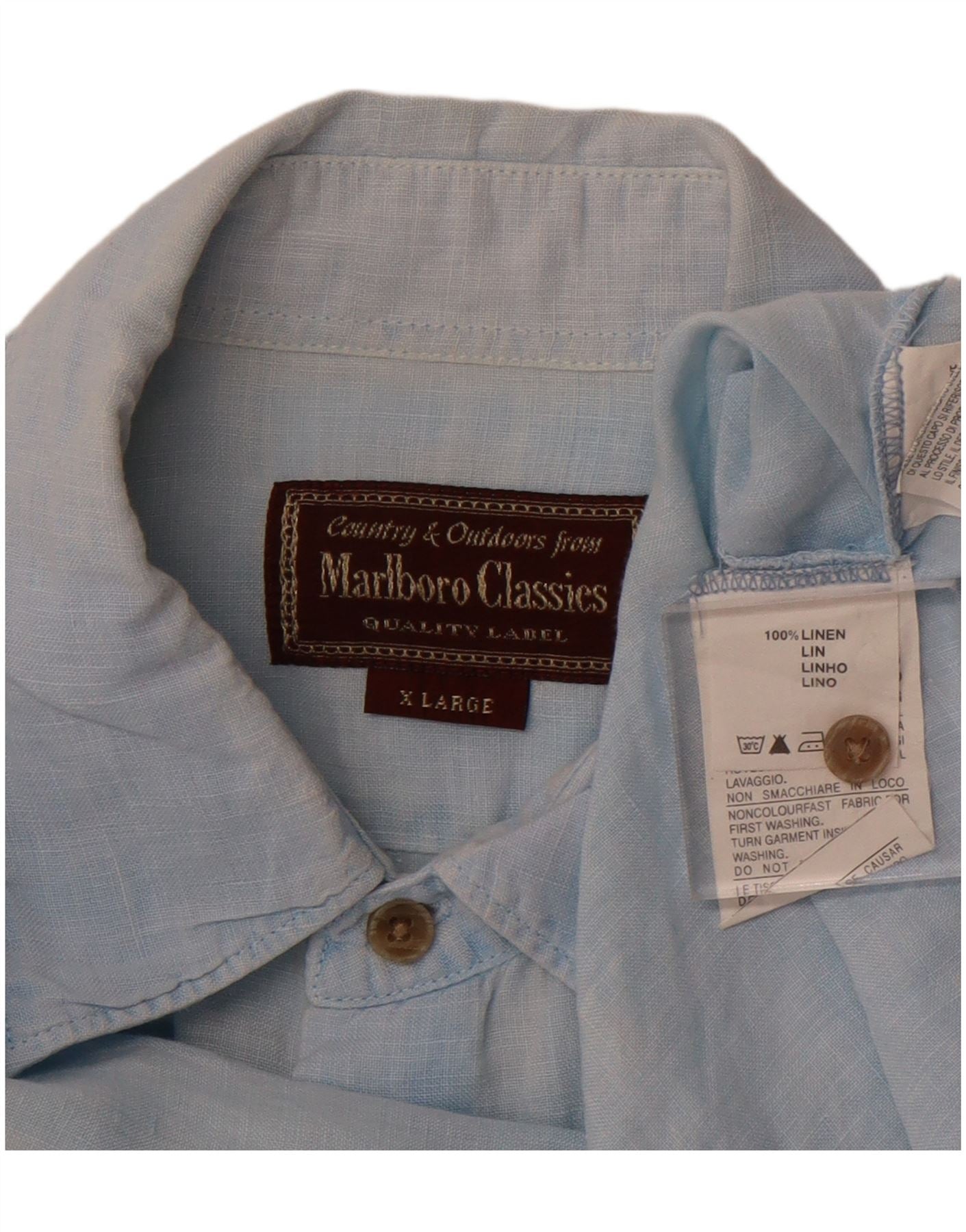 Мужская рубашка MARLBORO CLASSICS с коротким рукавом XL, синяя льняная