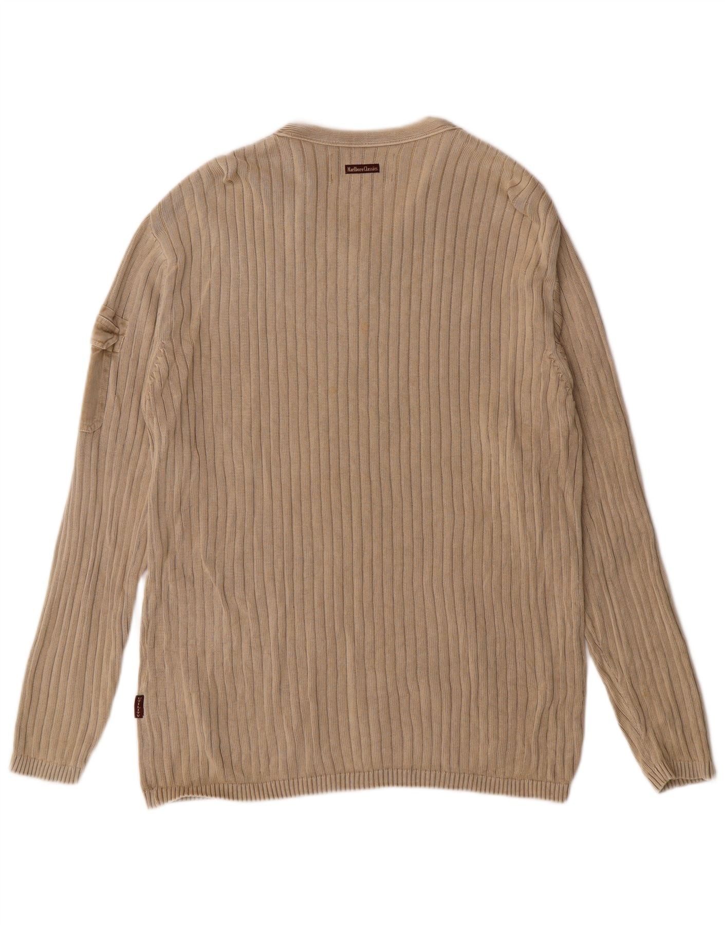 Мужской джемпер Marlboro Classics с v-образным вырезом, большой бежевый хлопковый классический классический