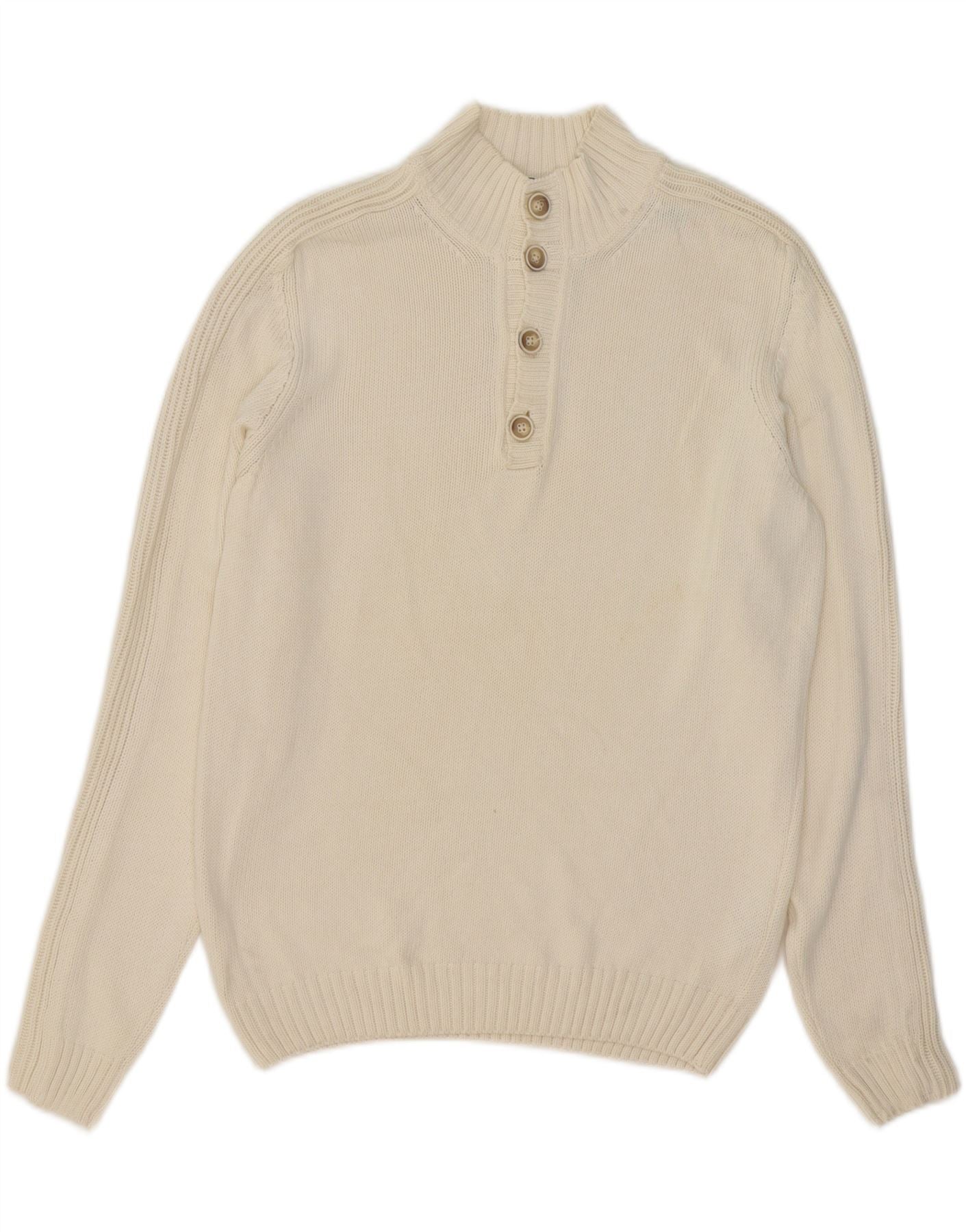 MASSIMO DUTTI Mens Button Neck Jumper Sweater EU 38 Small White Cotton