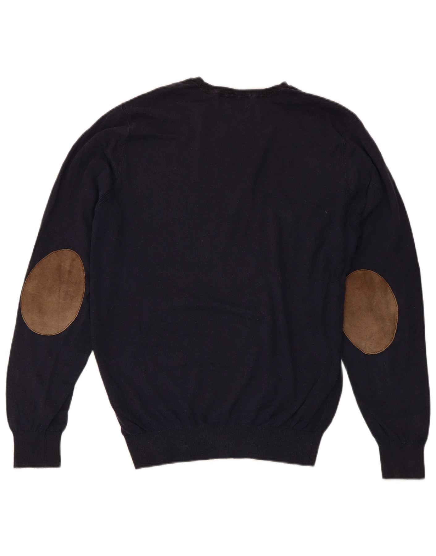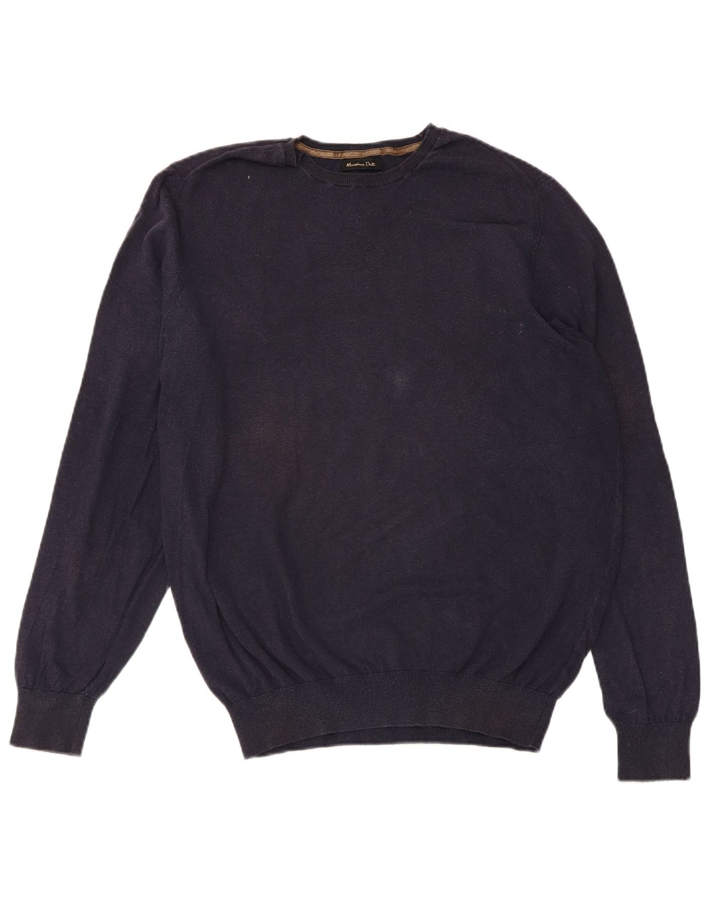 Мужской джемпер с круглым вырезом MASSIMO DUTTI, средний темно-синий хлопковый свитер