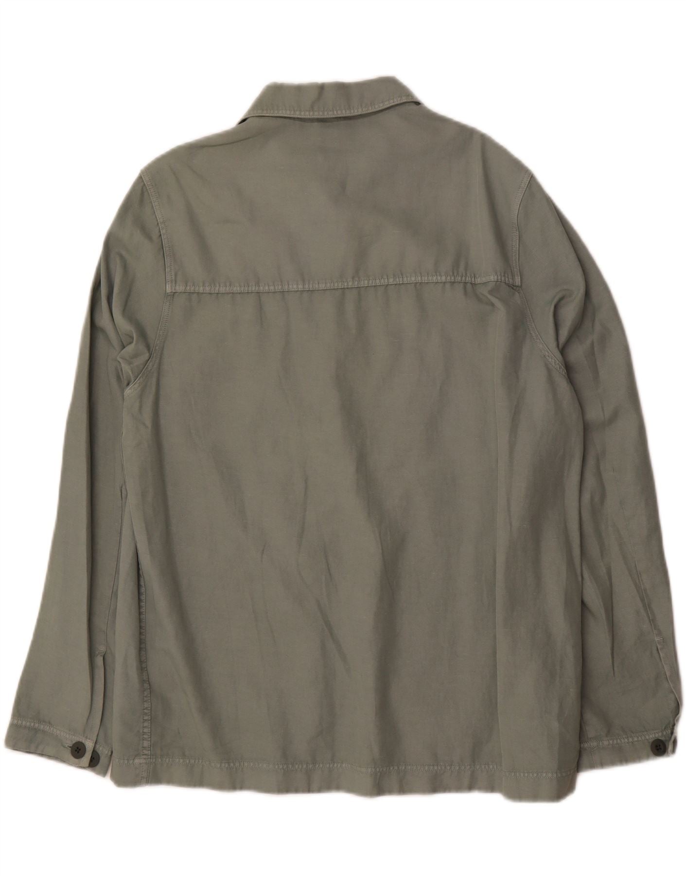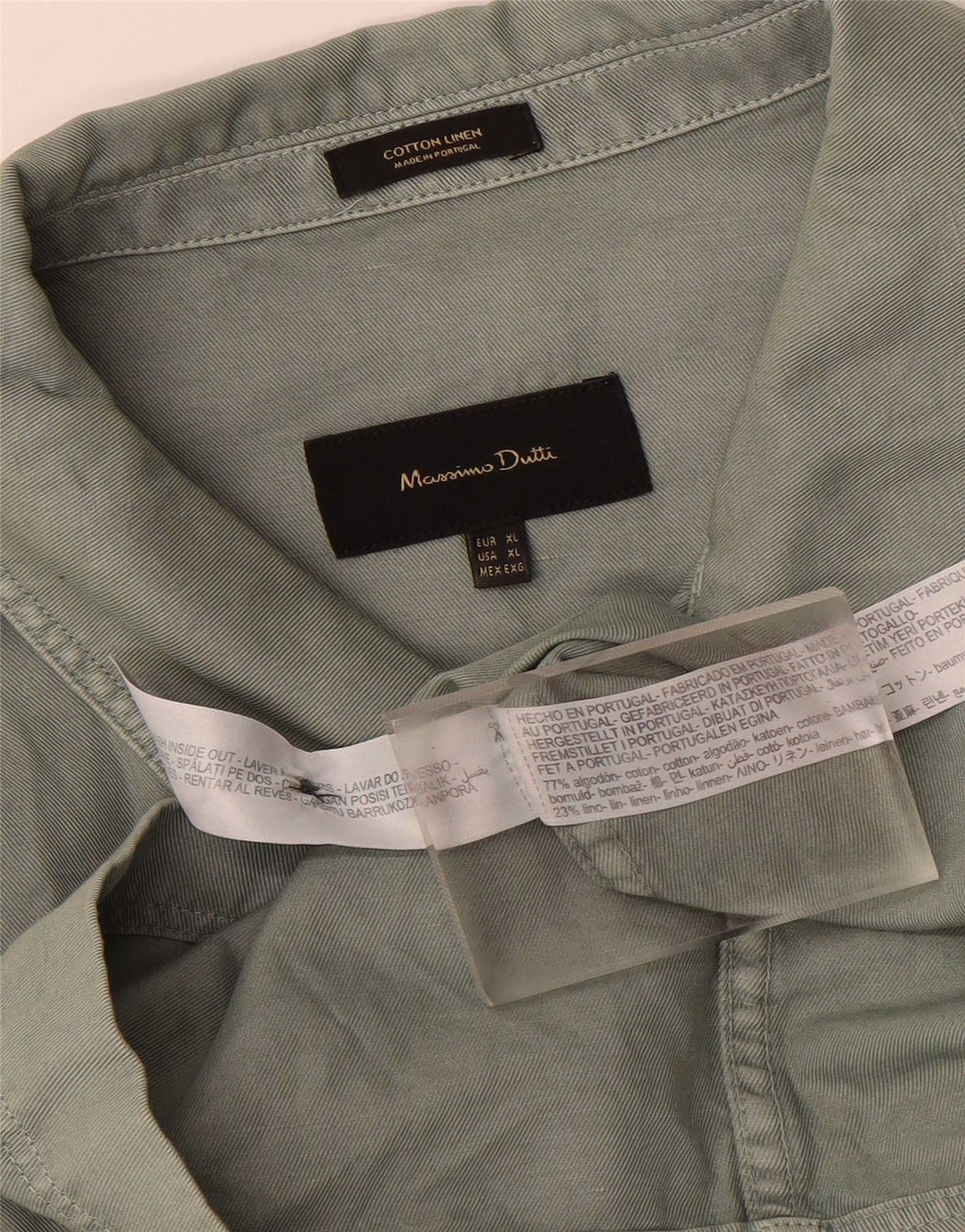 - AI Description: This Massimo Dutti men's overshirt is crafted from a lightweight khaki cotton linen blend. The blended fabric offers a breathable, comfortable texture. It features a classic collared neckline and a full button closure. Long sleeves taper neatly for a refined yet relaxed feel. The regular fit is designed for layering. Practical pockets on the chest add to its utilitarian, army-inspired style. Tonal buttons complete the understated design.