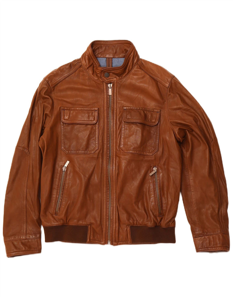 MASSIMO DUTTI Mens Leather Jacket UK 38 Medium Brown Sheepskin