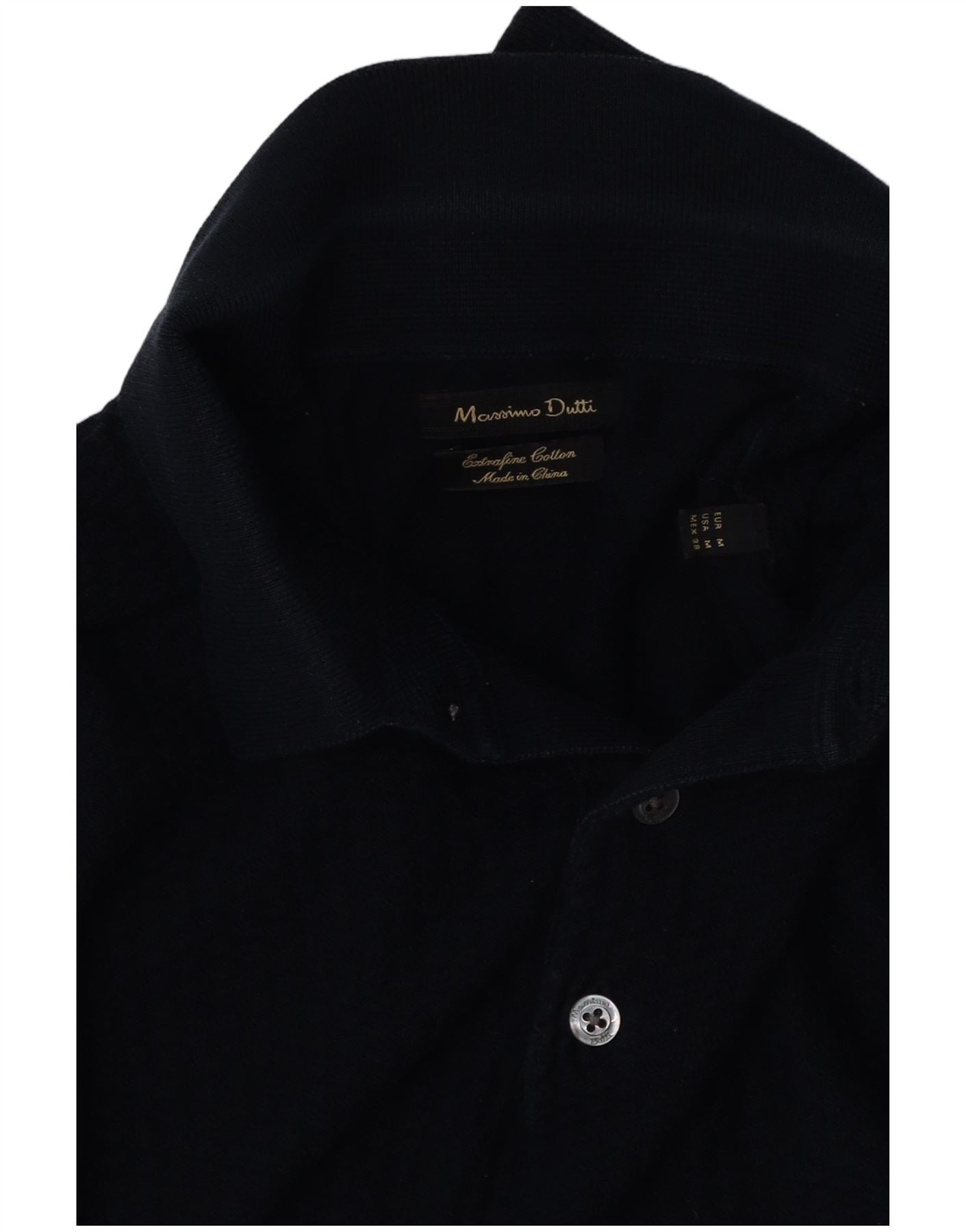 Мужской джемпер с воротником поло MASSIMO DUTTI, средний темно-синий хлопковый свитер