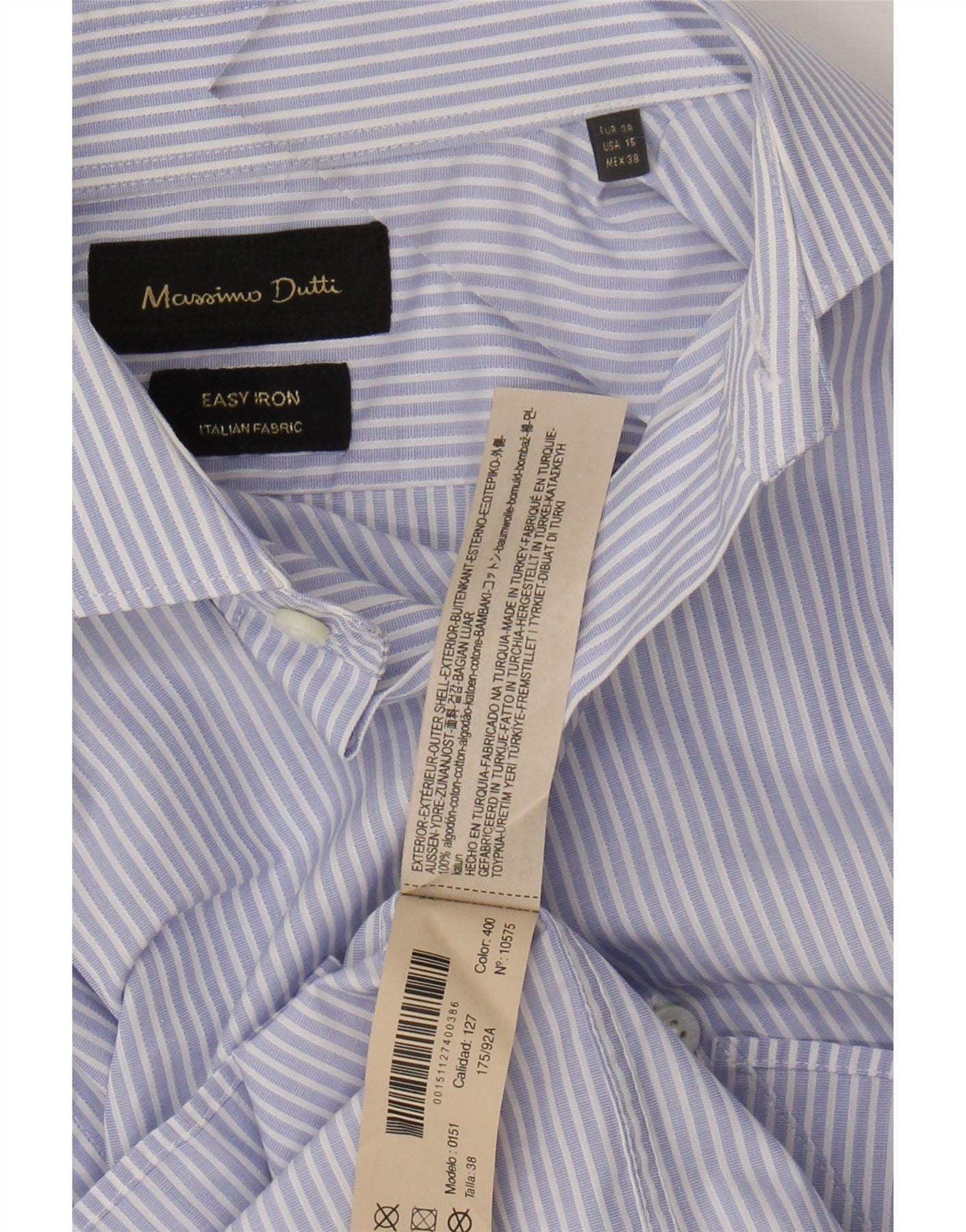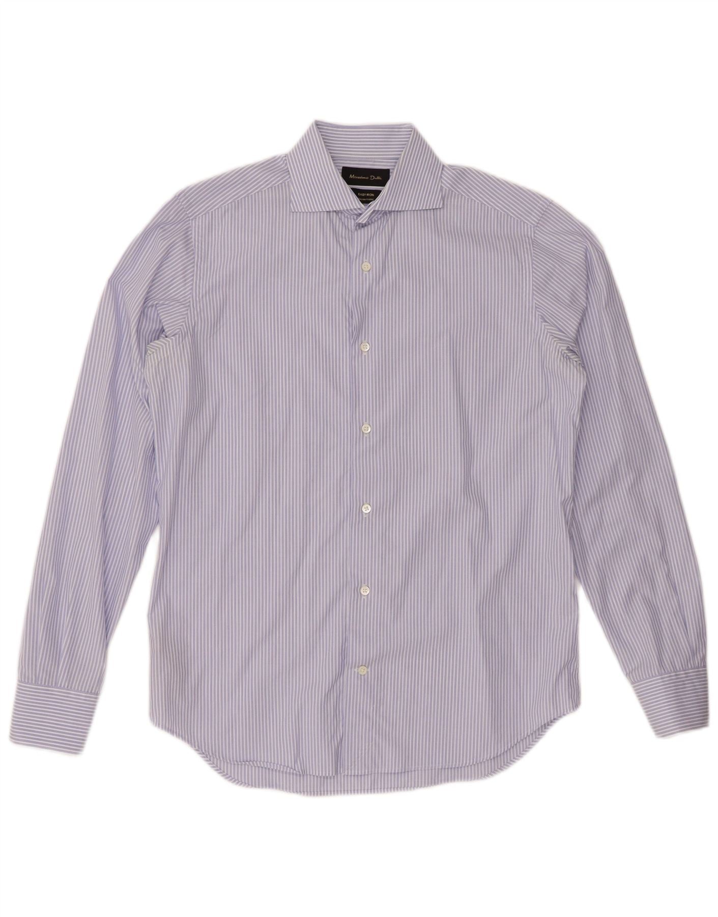 Мужская рубашка MASSIMO DUTTI, размер 15 38, средний синий в тонкую полоску, хлопок