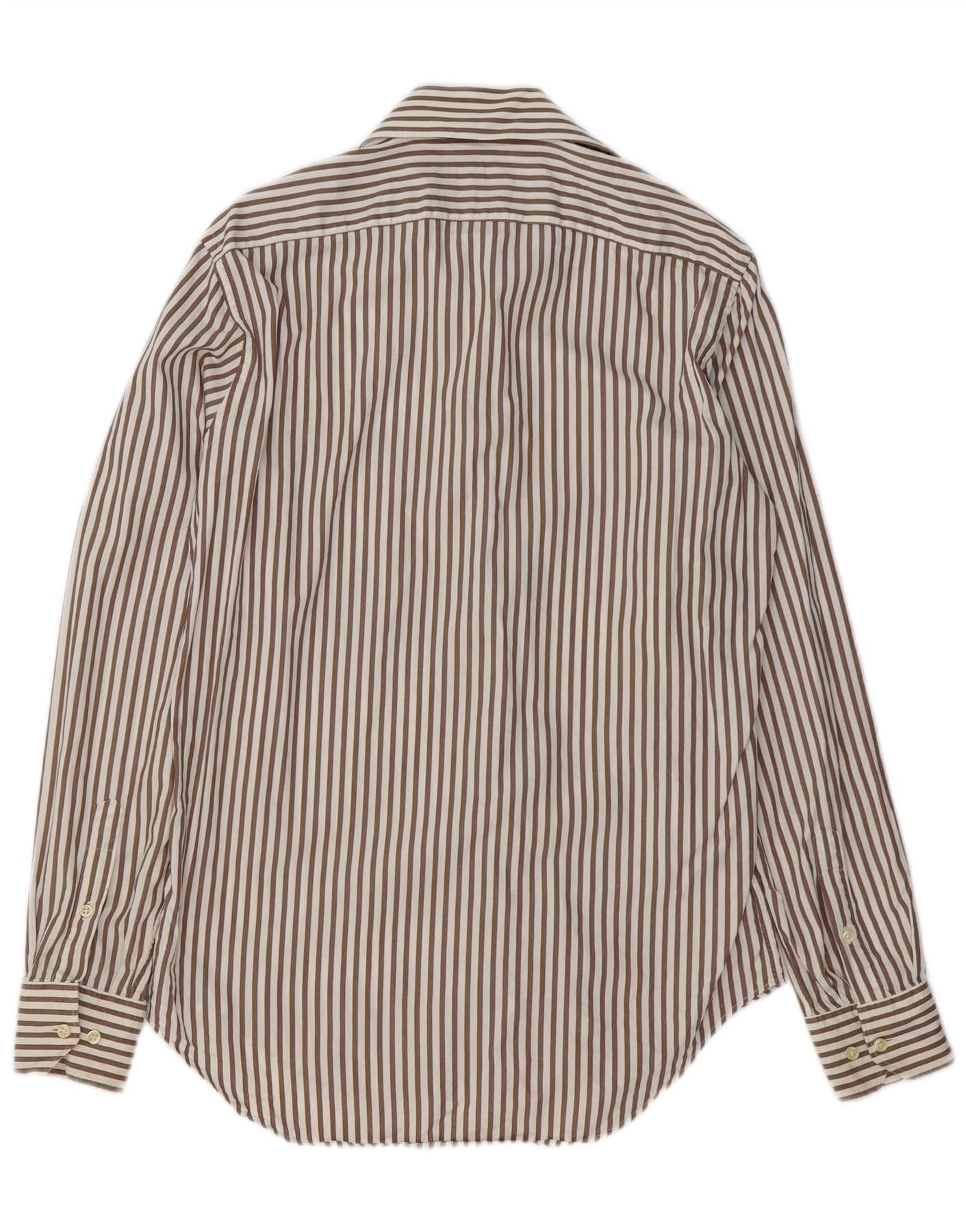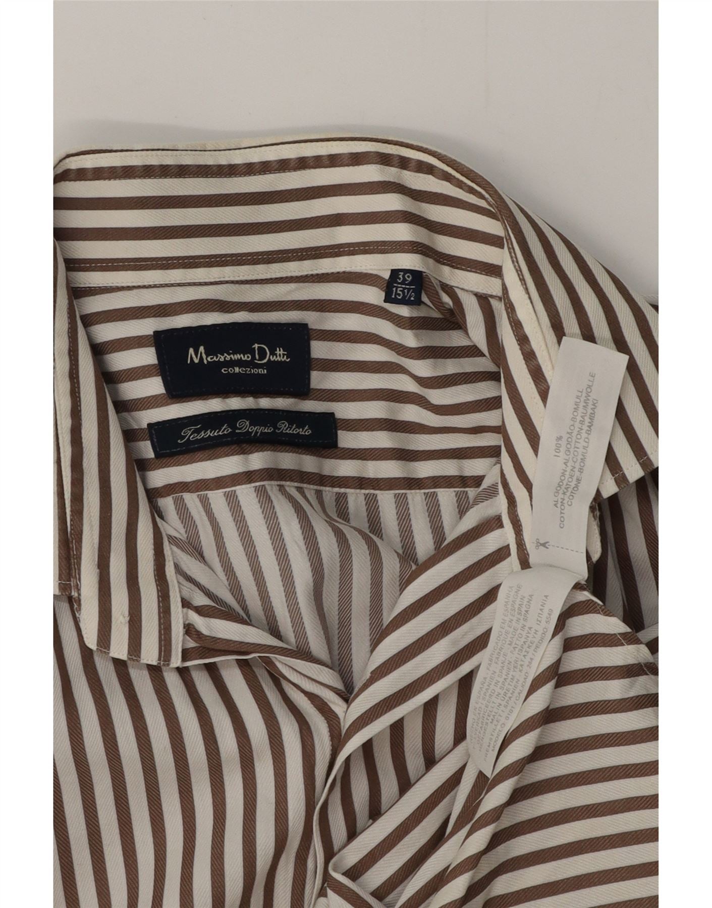 Мужская рубашка MASSIMO DUTTI, размер 39 15 1/2, средний коричневый хлопок в тонкую полоску